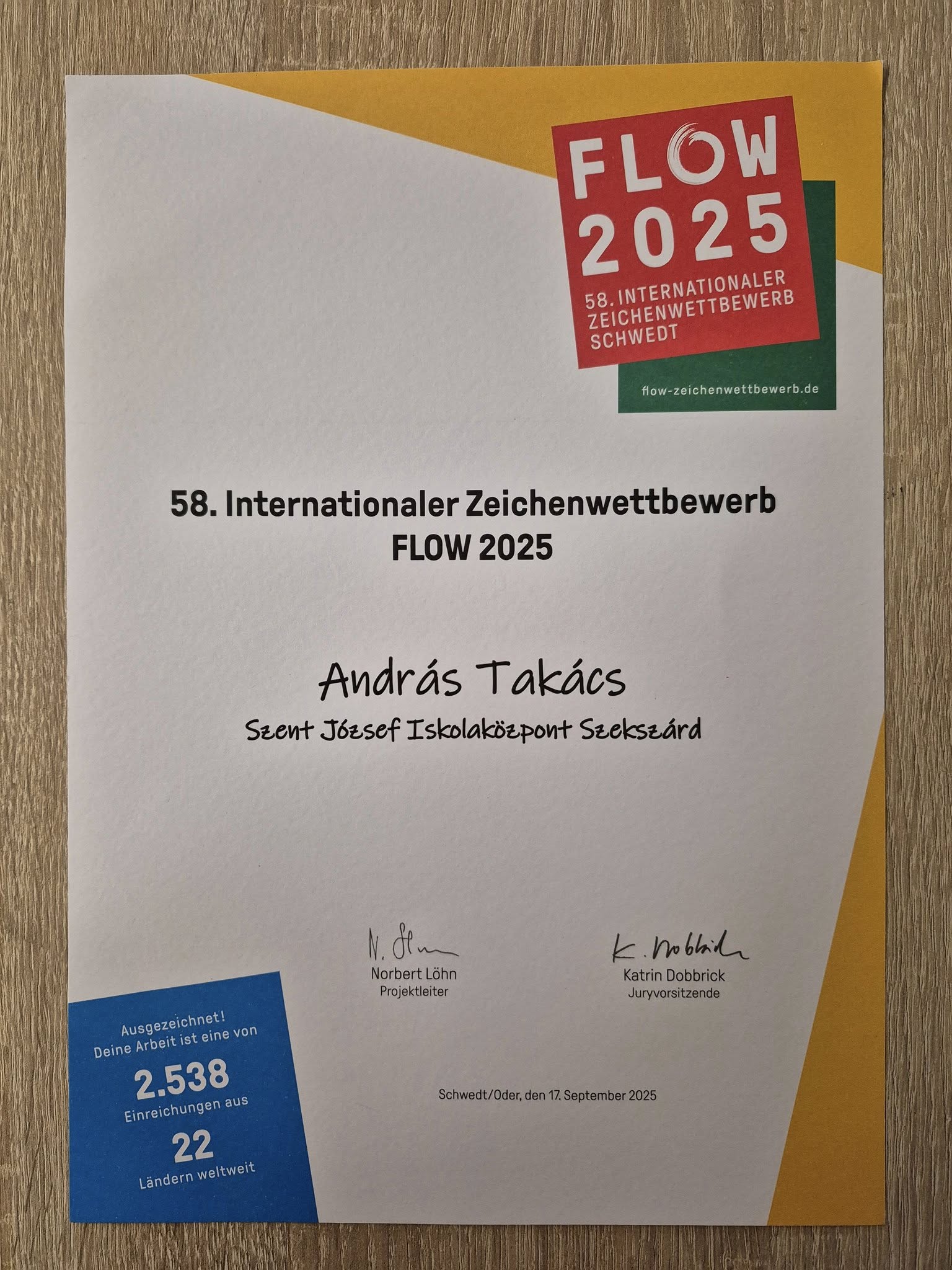 Nemzetközi rajzpályázaton munkájukért elismerő oklevelet kapott Takács András és Tóth Bence Tibor mádodikos tanulóink.