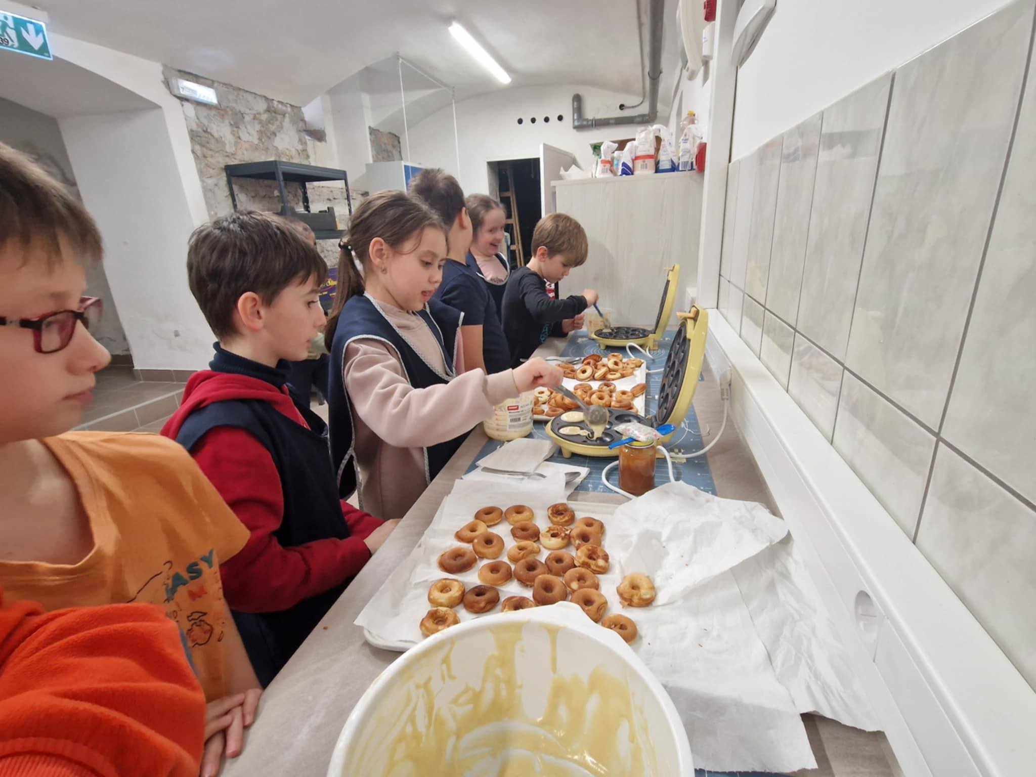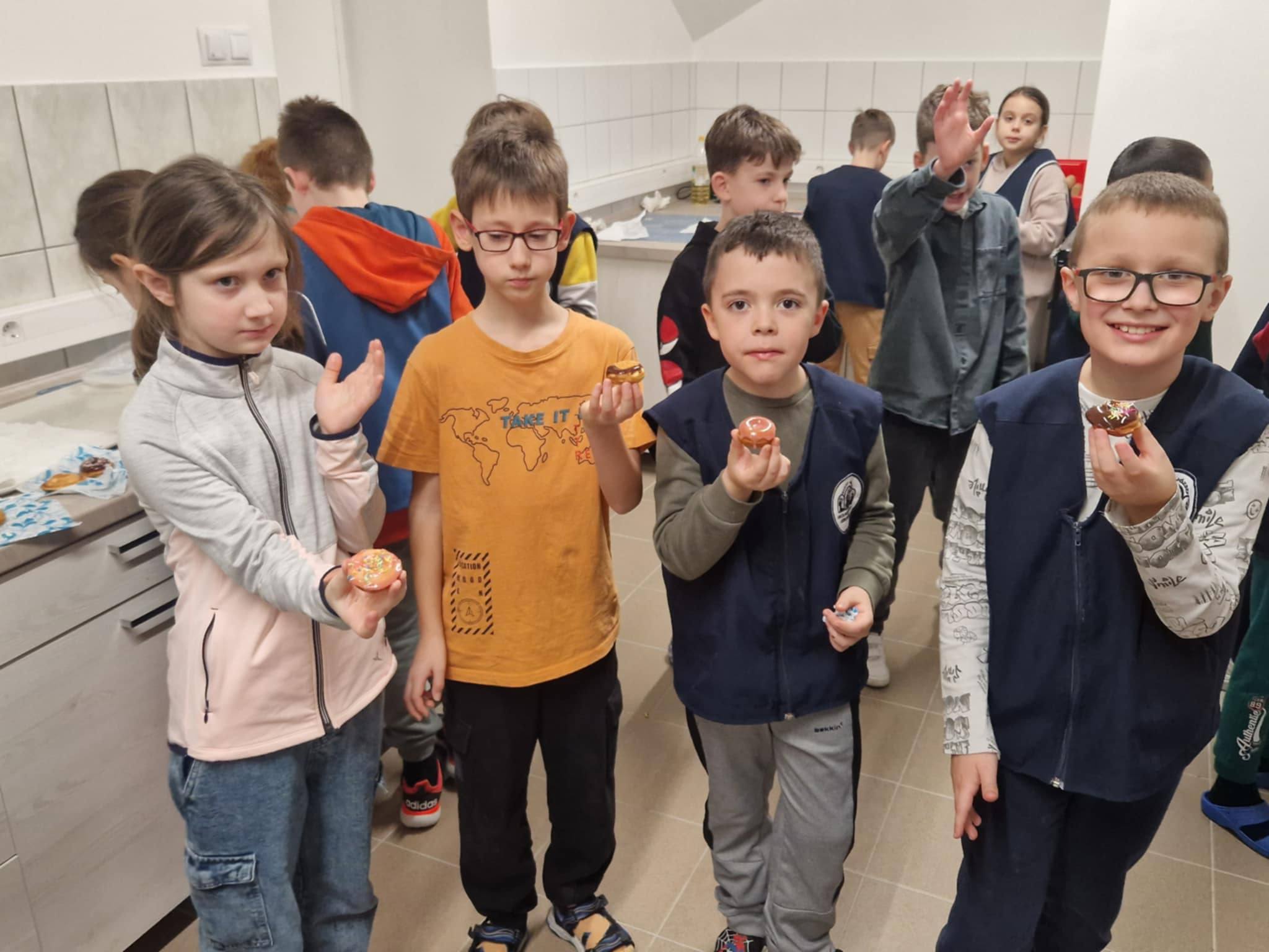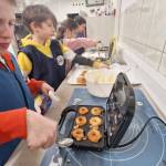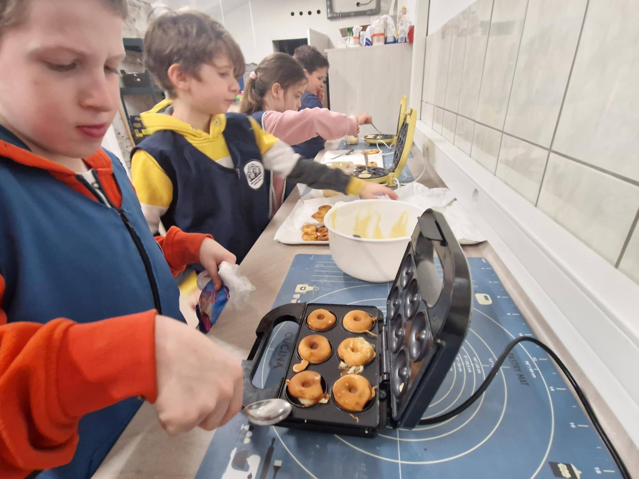Az új tankonyhát a harmadikosok is birtokukba vették. Farsangi fánkot sütött az osztály a gyerekek nagy örömére.