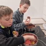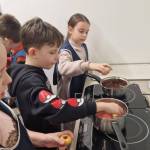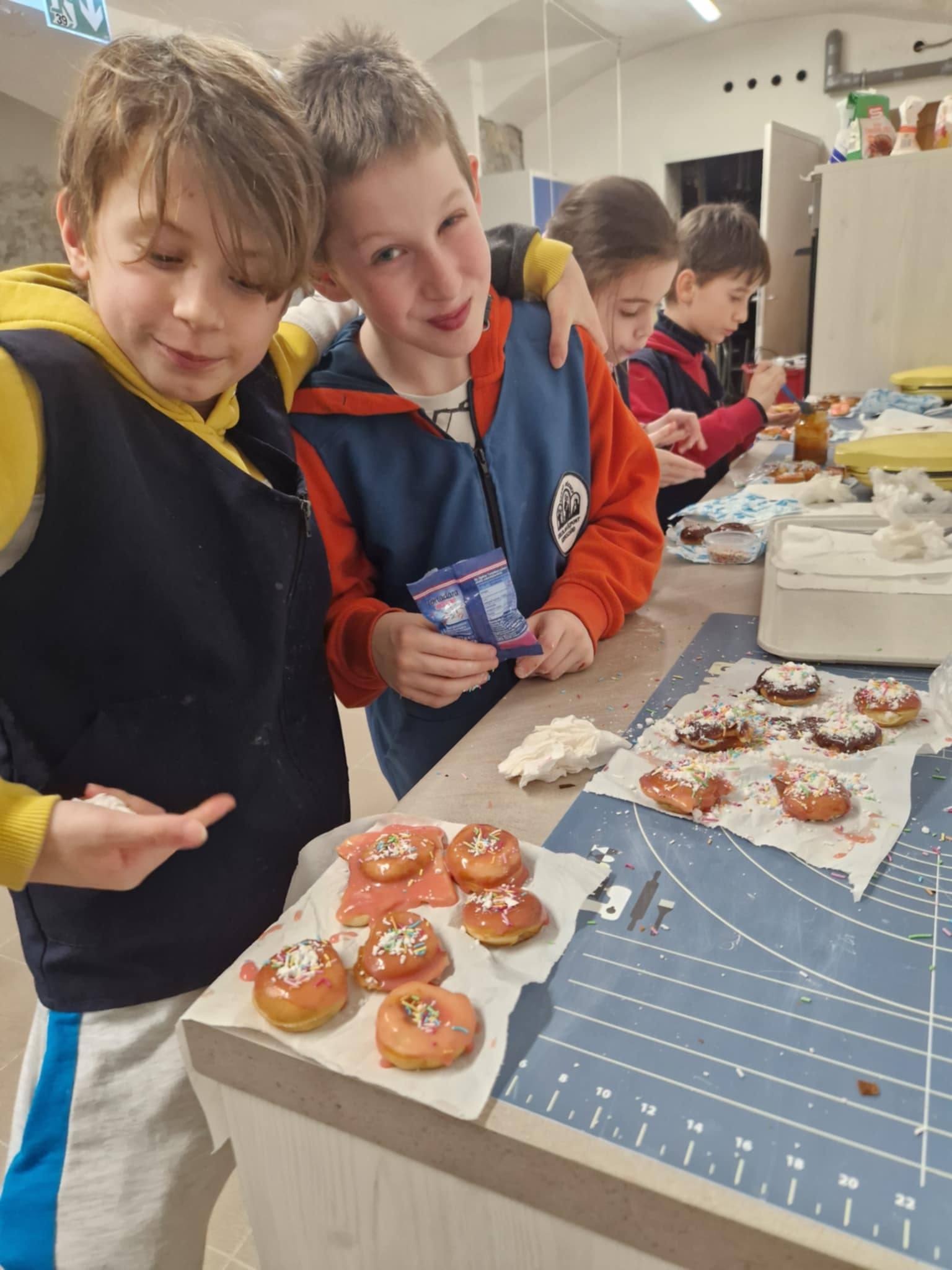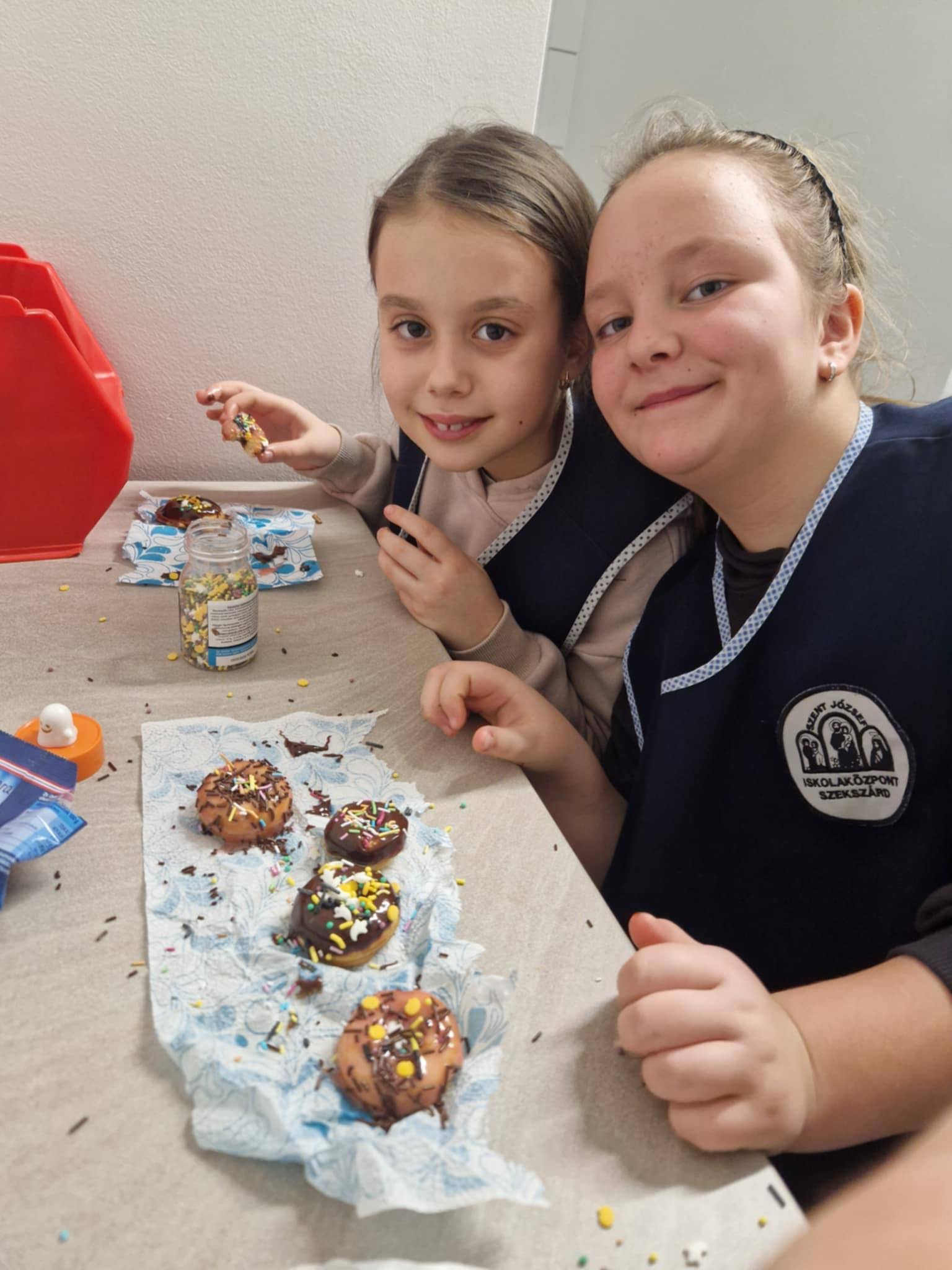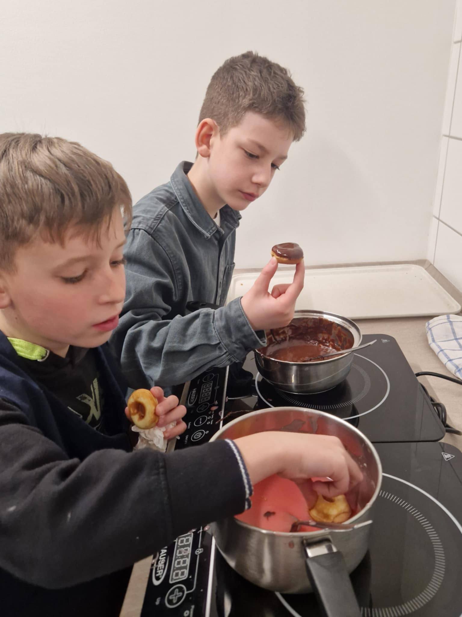 Az új tankonyhát a harmadikosok is birtokukba vették. Farsangi fánkot sütött az osztály a gyerekek nagy örömére.