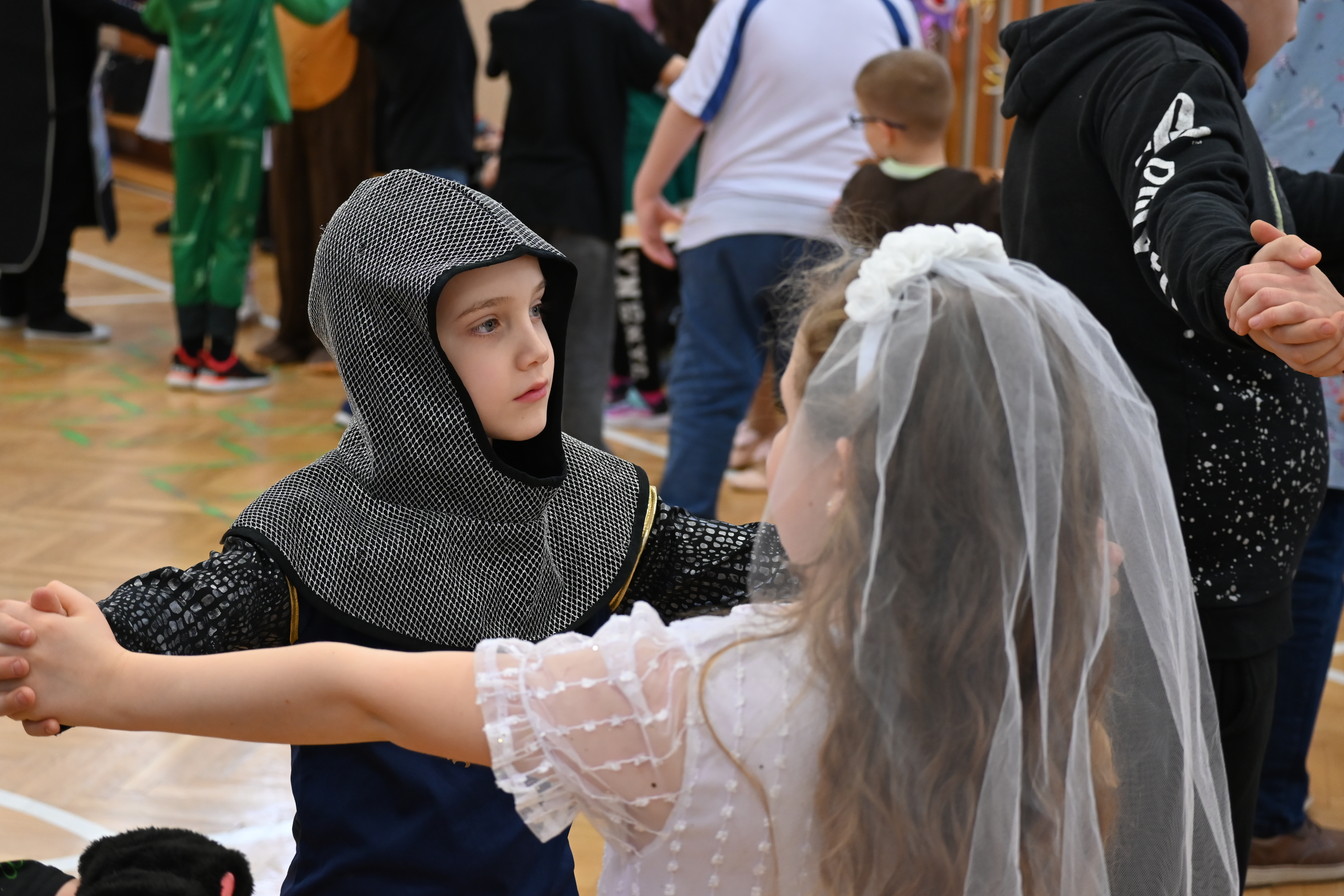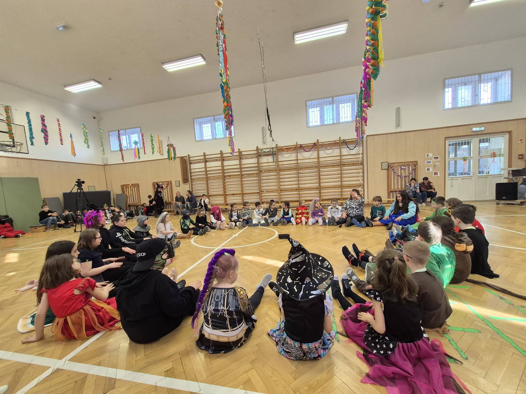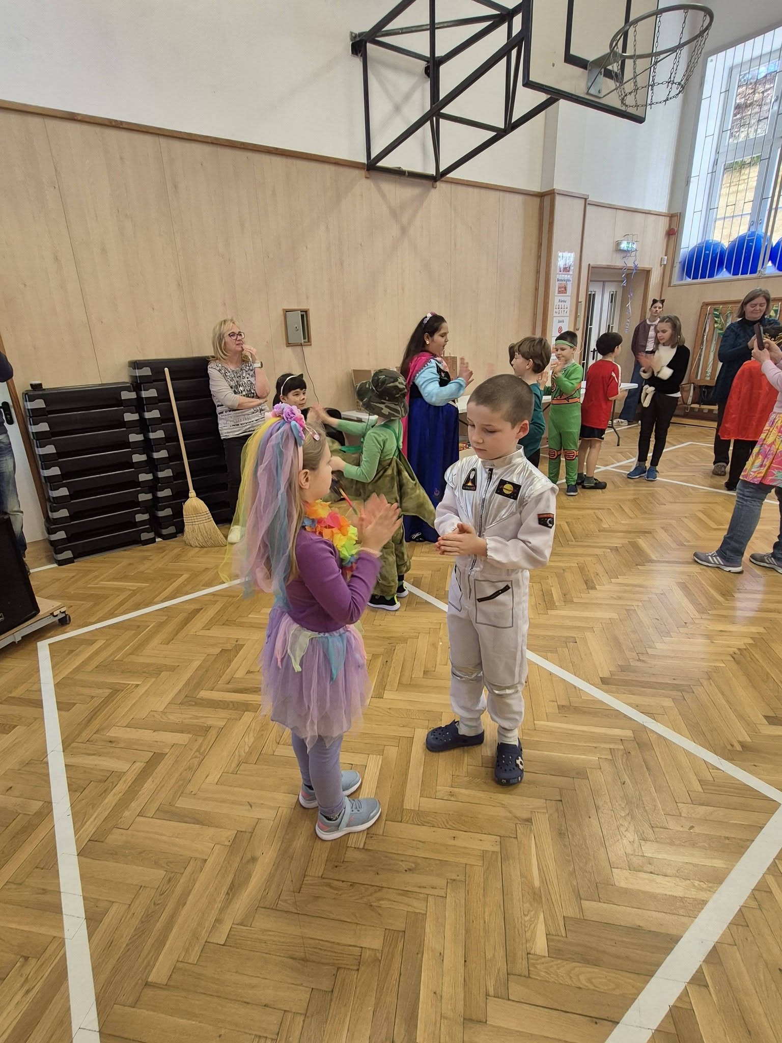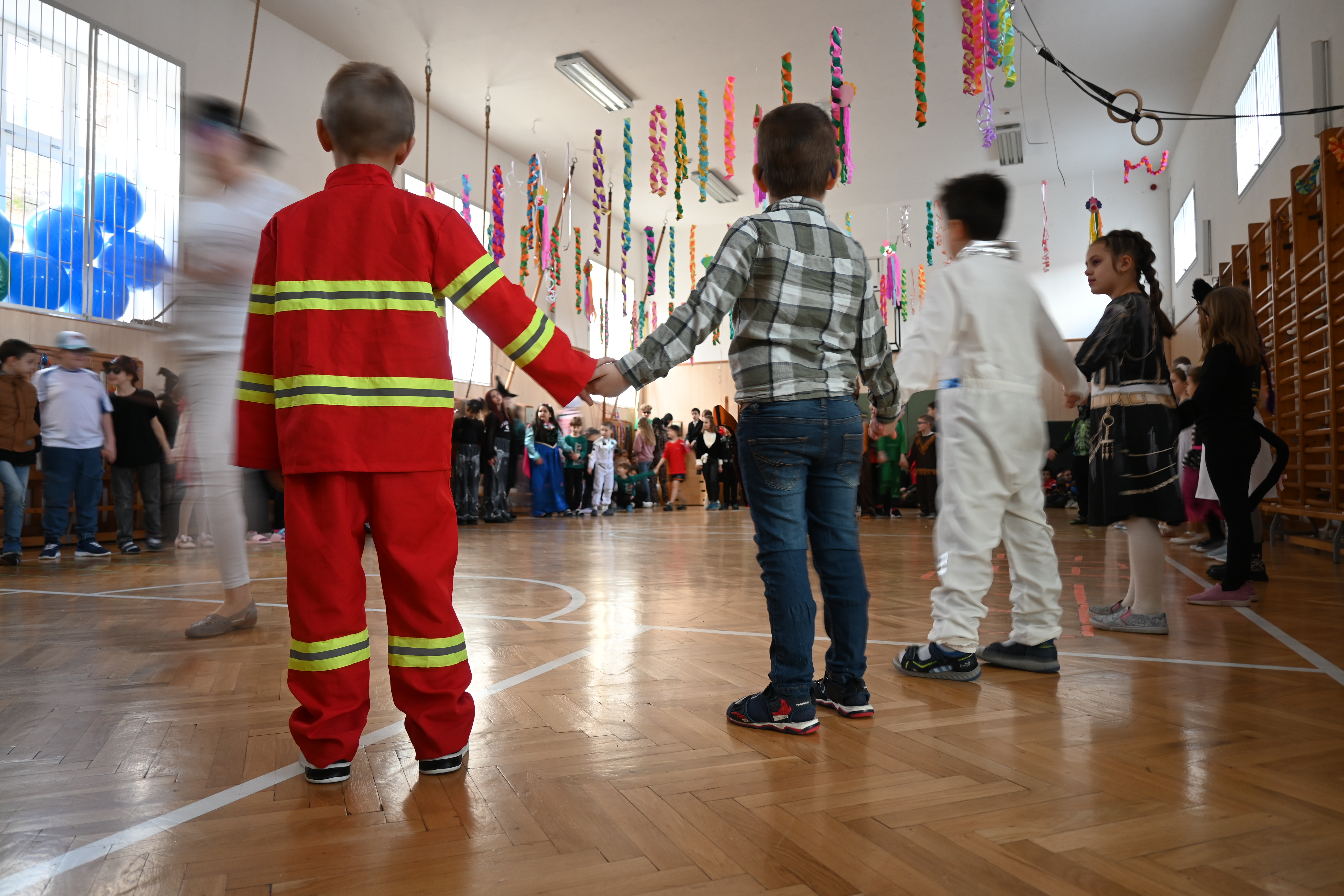 A gyerekek már reggel jelmezbe öltözve érkeztek, így az iskola folyosóit, tantermeit színes, ötletes és kreatív maskarások töltötték meg.