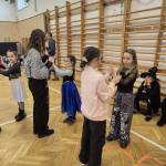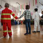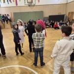 13 órától a tornateremben német zenés táncház vette kezdetét. A táncoktató Köhlerné Koch Ilona lelkesen vonta be a gyerekeket a közös mulatságba.