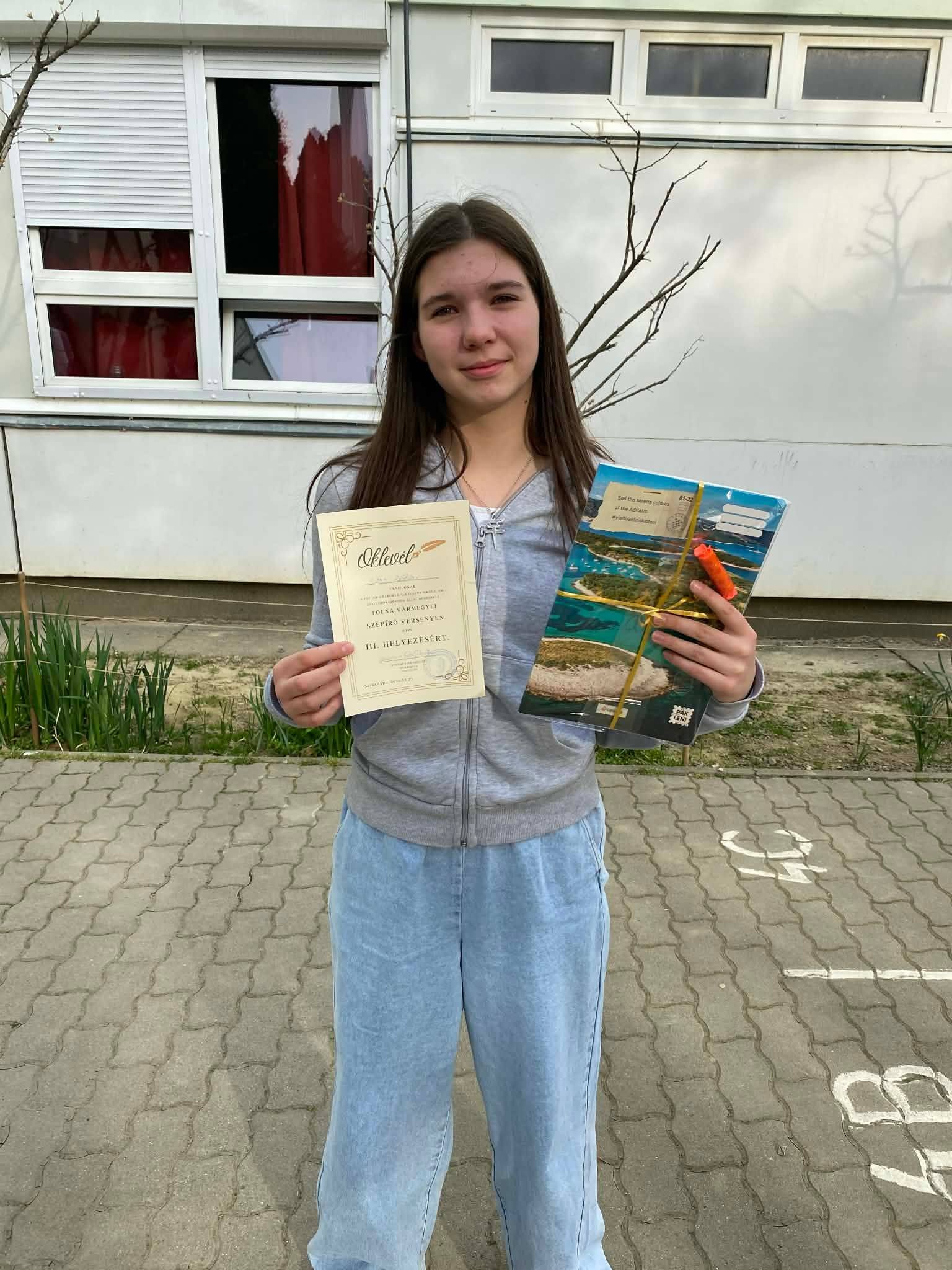 as Zsófia 7.osztályos tanulónk a Gyakorló Általános Iskolában rendezett Szépíró versenyen 3.helyezést ért el.