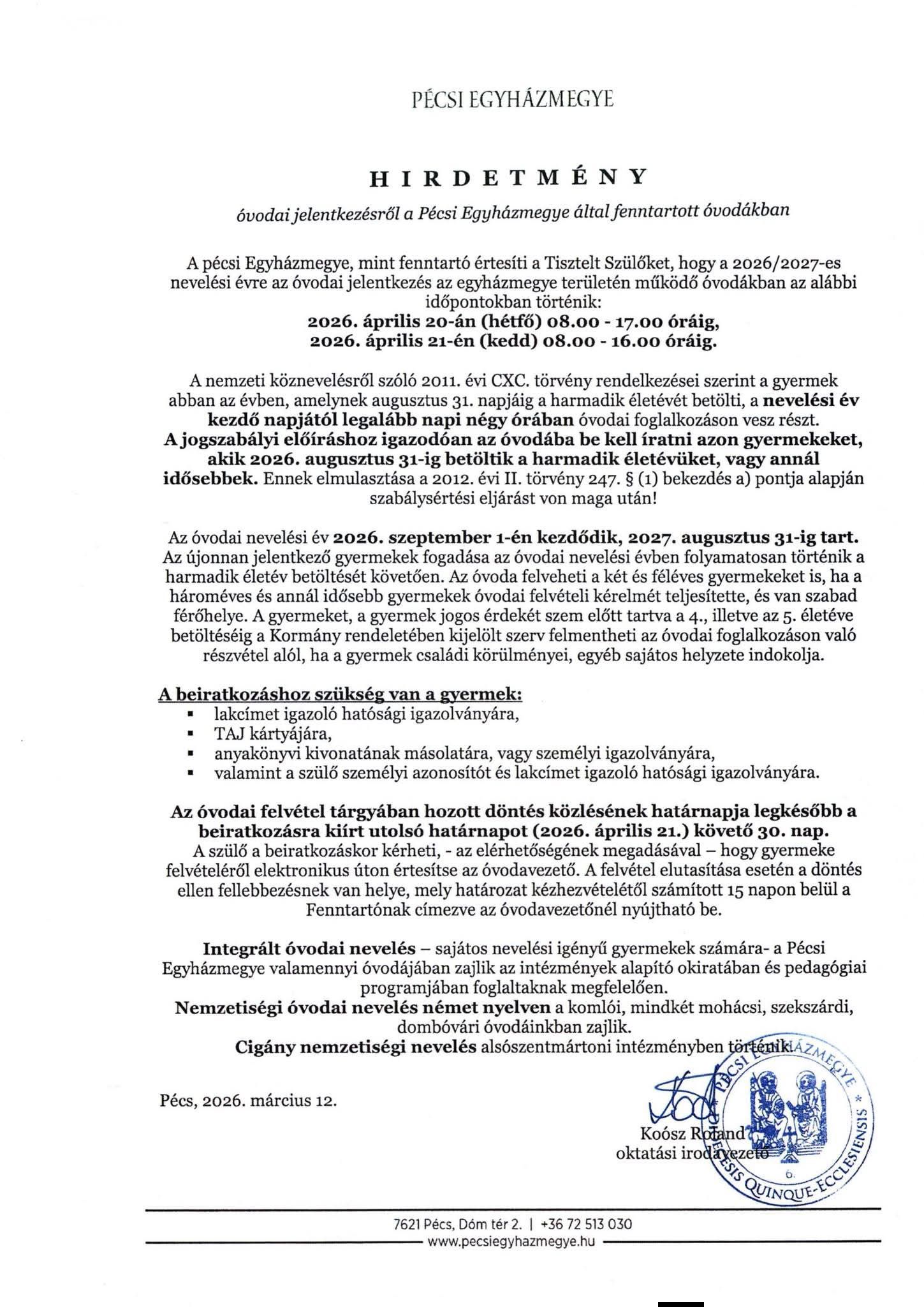 Beiskolázás 2026/2027