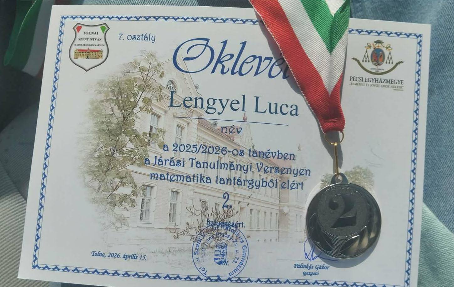 Lengyel Luca 7. osztályos tanulónk Tolnán a Járási Tanulmányi Versenyen kétszer is megmérette magát.