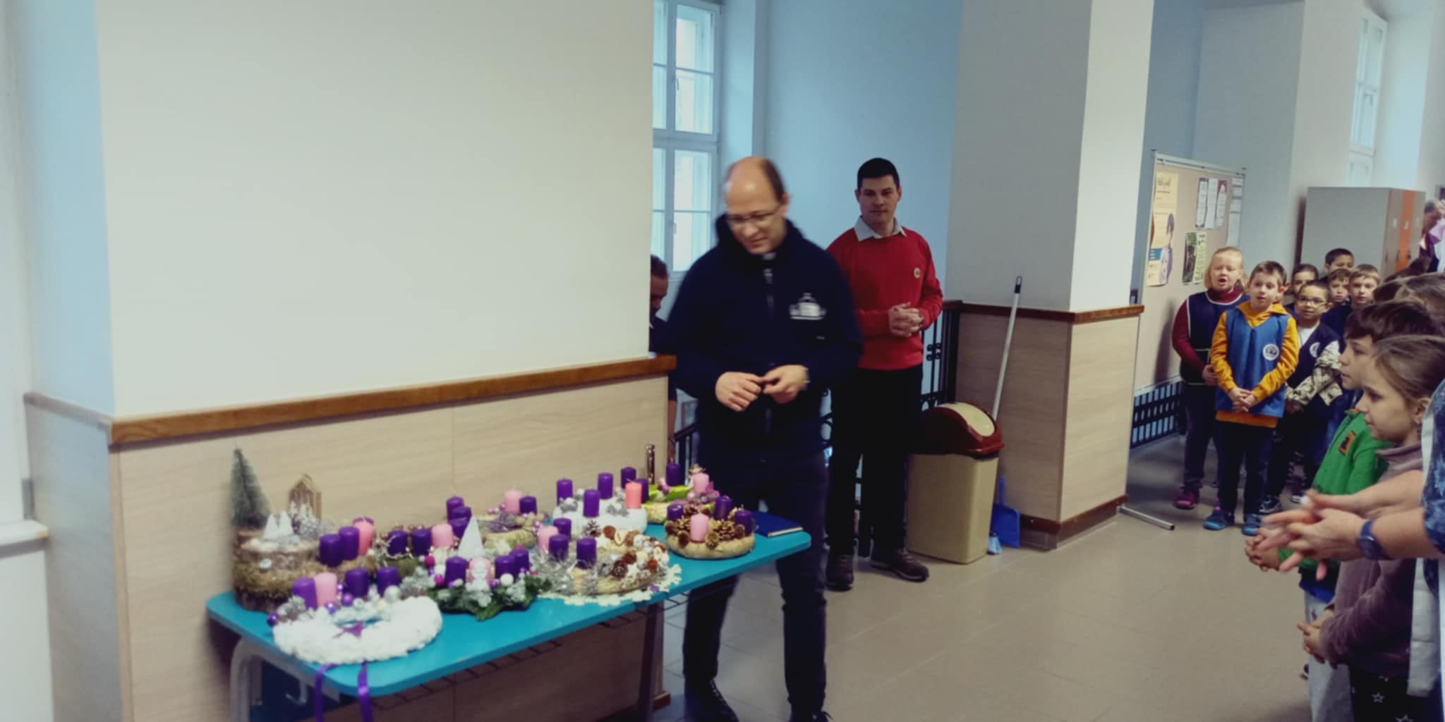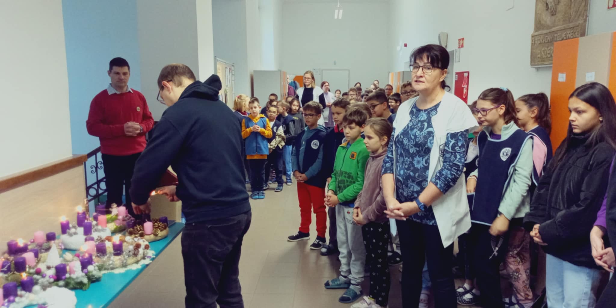 Attila atya a reggeli ima keretében megáldotta az osztálykoszorúkat és meggyújtotta az első gyertyát.