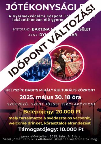 Dr. Horváth Kálmán főispán úrnak, bálunk egyik fővédnökének tragikus hirtelenséggel bekövetkezett halála miatt a Katolikus Jótékonysági Bál 2025. május 30-án kerül megrendezésre.
