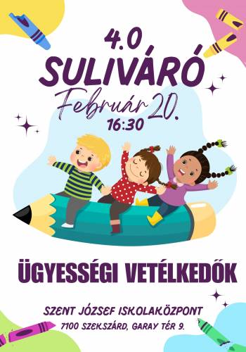 Szeretettel várjuk az érdeklődőket suliváró rendezvényünkre Február 20-án. Igazgatói tájékoztatót követően ügyességi játékokkal várjuk a gyermekeket.