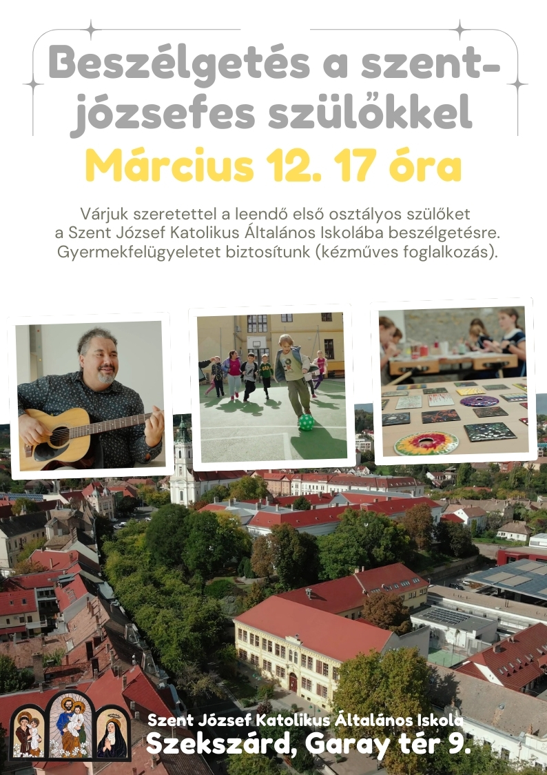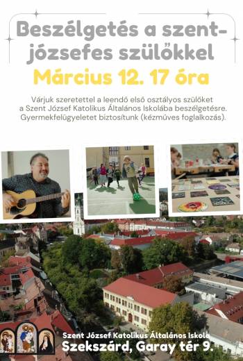 a Szent József Katolikus Általános Iskolába beszélgetésre. Gyermekfelügyeletet biztosítunk (kézműves foglalkozás).
