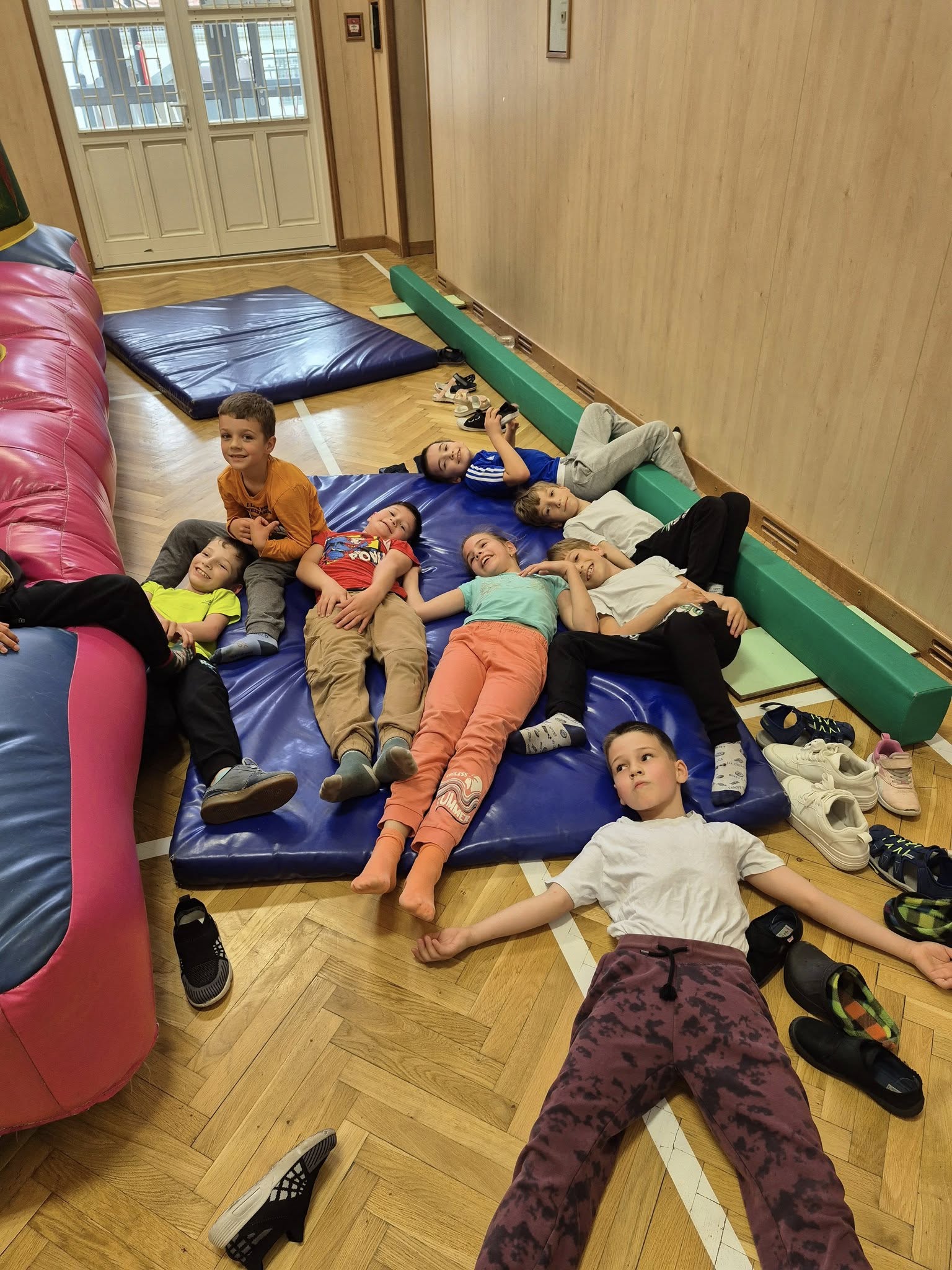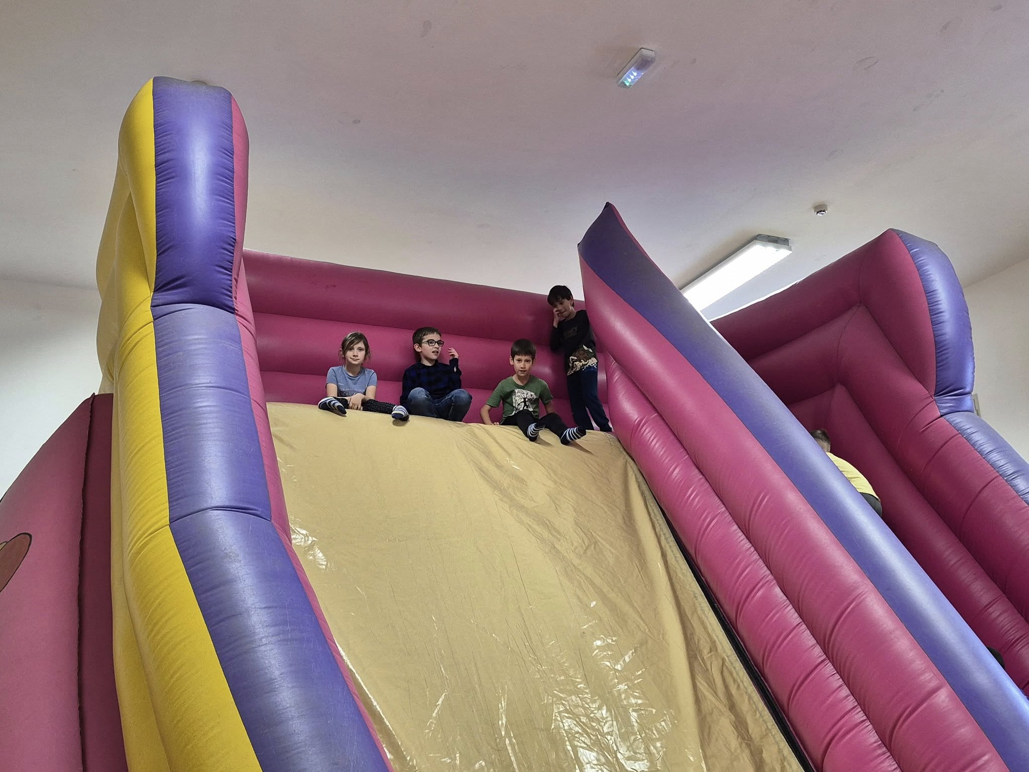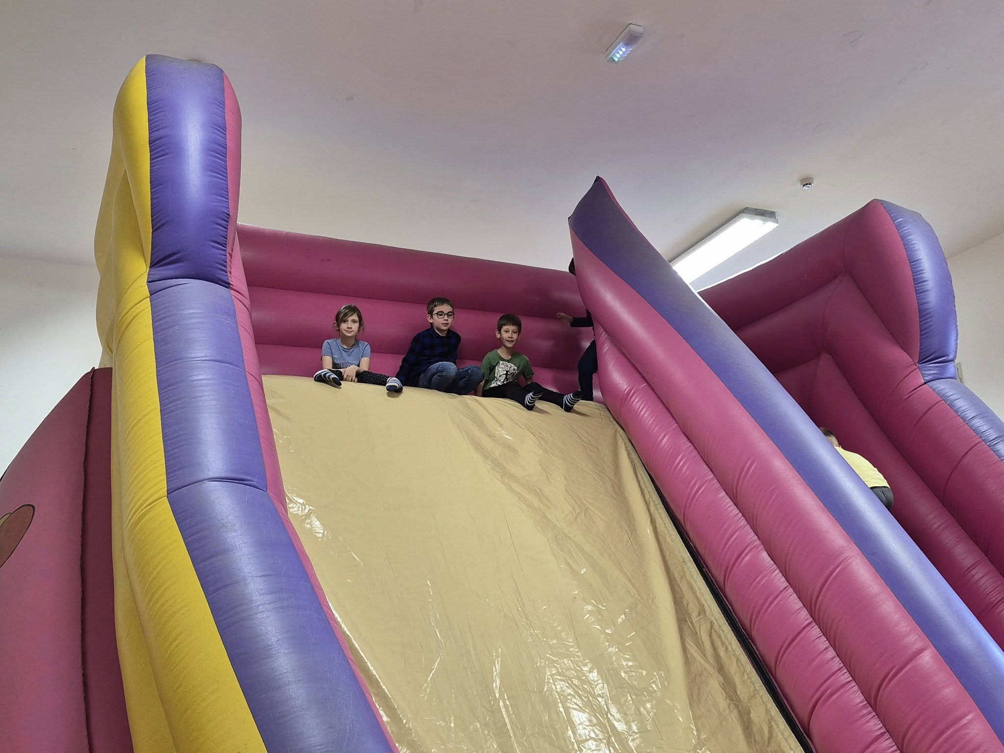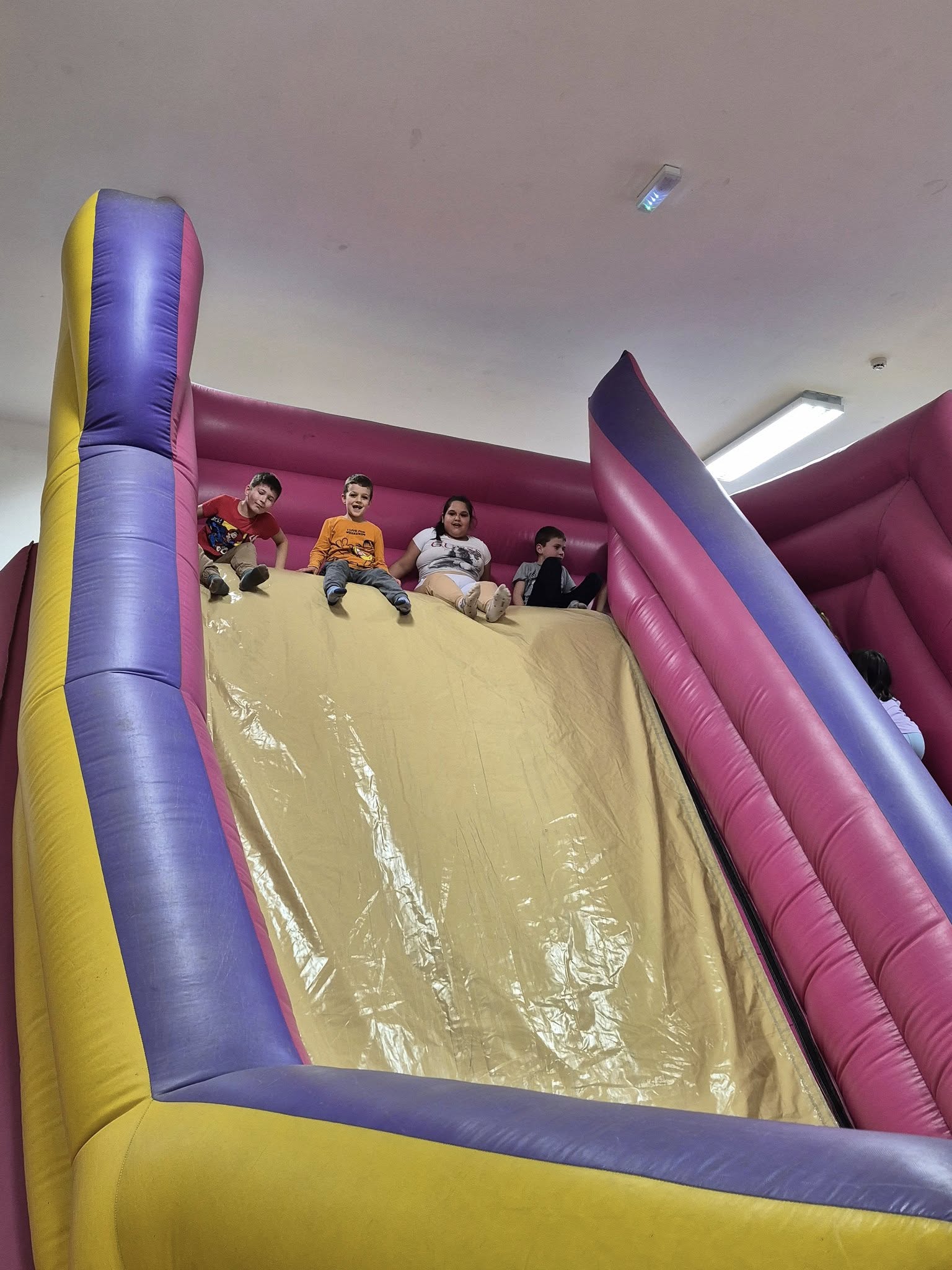 Május 23-án pénteken gyereknap alkalmából az iskola légvárral és mozival lepte meg az alsósokat.