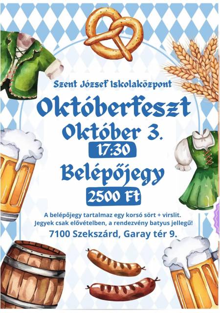 Októberfeszt október 3-án az iskolában a Szent Rita Óvoda és a Szent József Iskolaközpont szülőinek és az iskolaközpont dolgozóinak. Kezdés: 17:30