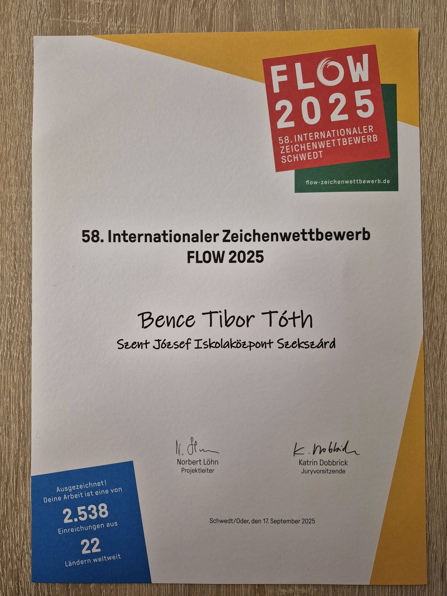 Nemzetközi rajzpályázaton munkájukért elismerő oklevelet kapott Takács András és Tóth Bence Tibor mádodikos tanulóink.