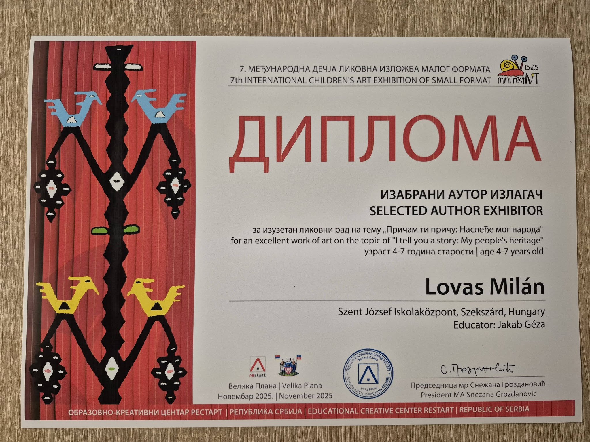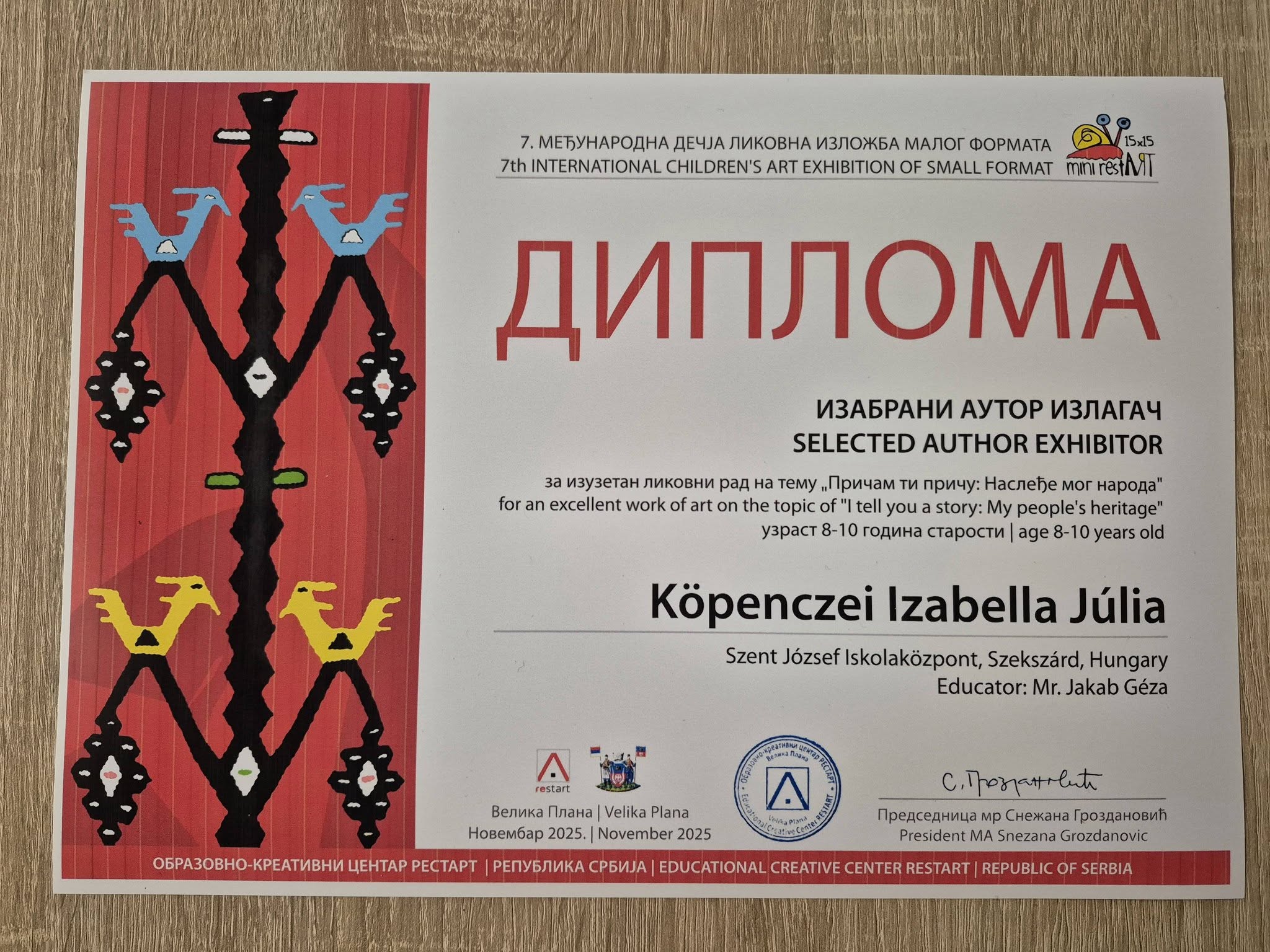 A szerbiai MiniRestart elnevezésű nemzetközi rajzpályázaton több, mint ötezer rajz közül válogatták be kiállításra iskolánk két tanulójának munkáját.