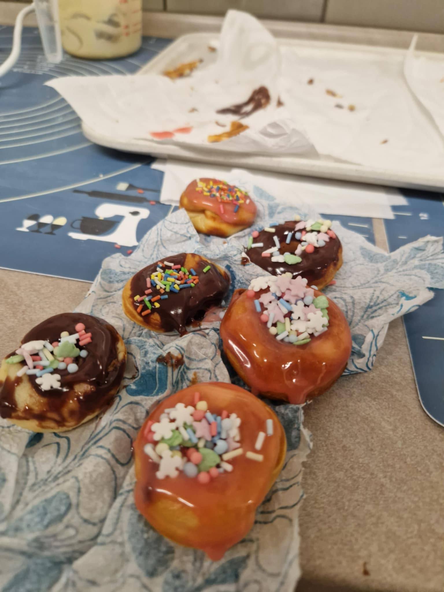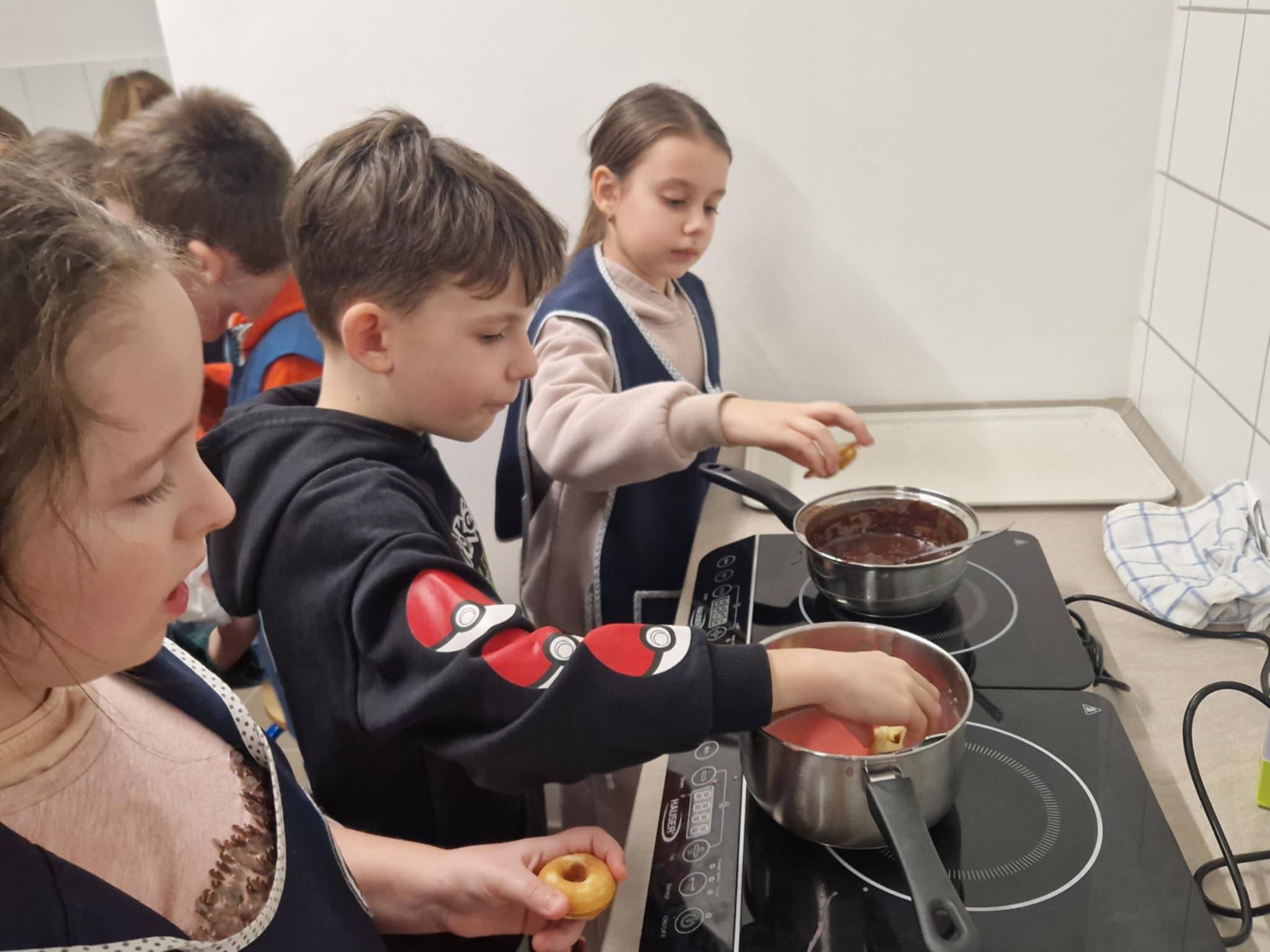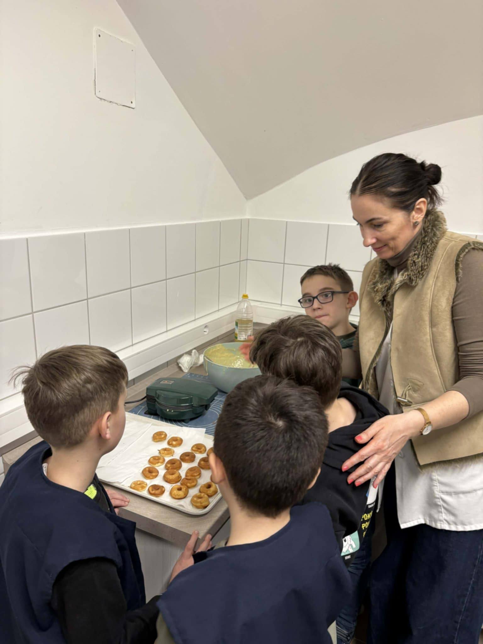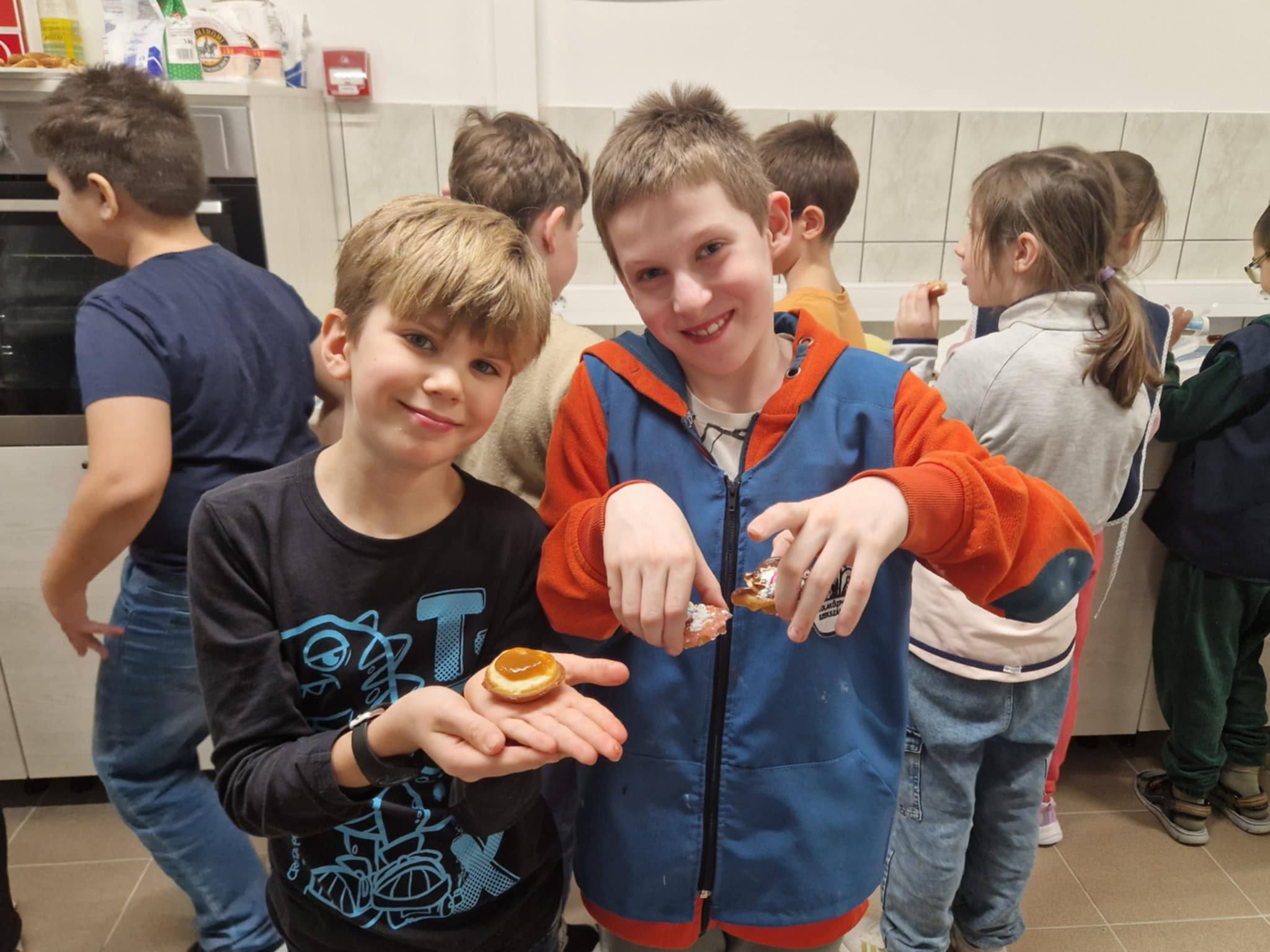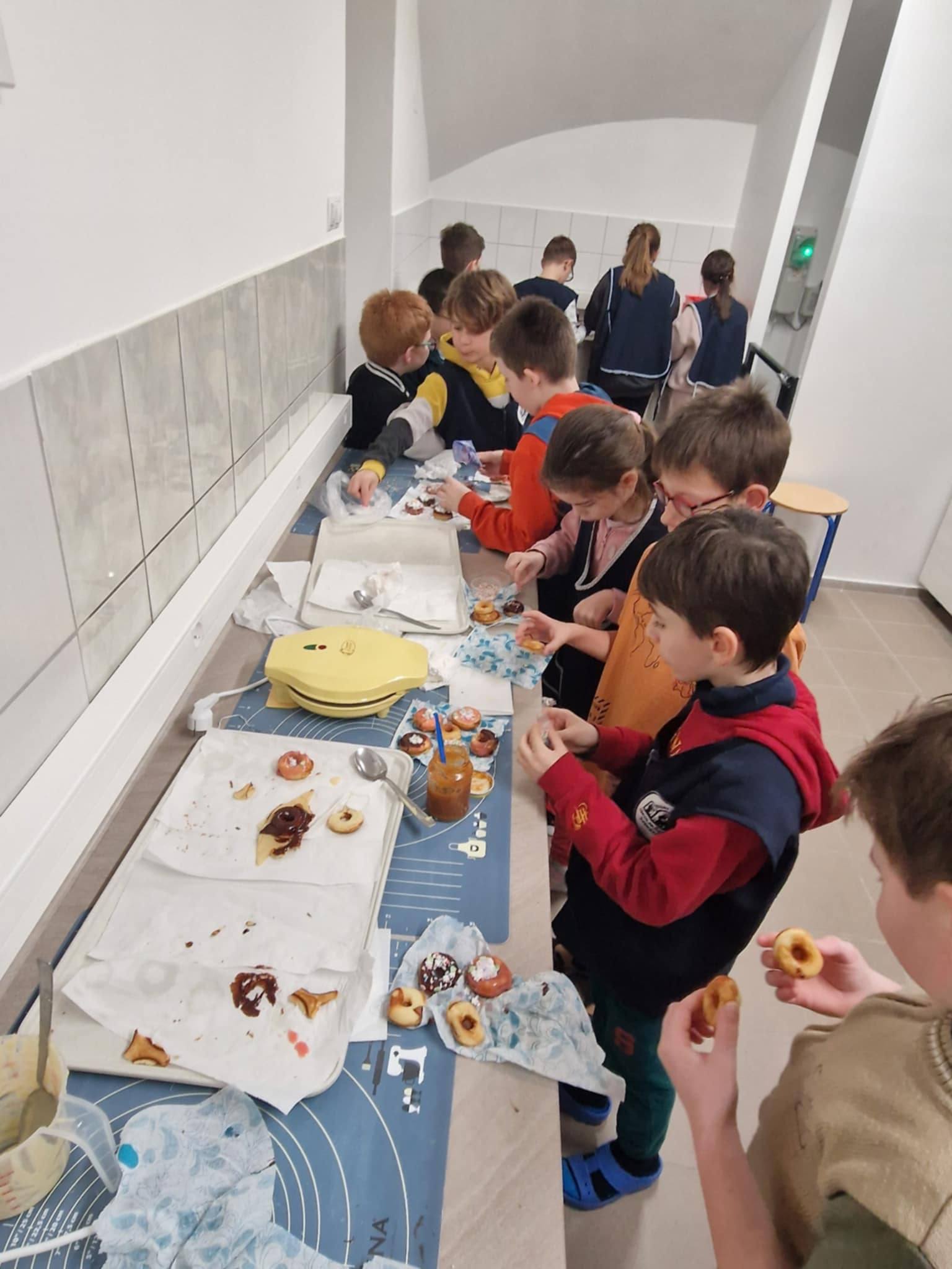 Az új tankonyhát a harmadikosok is birtokukba vették. Farsangi fánkot sütött az osztály a gyerekek nagy örömére.