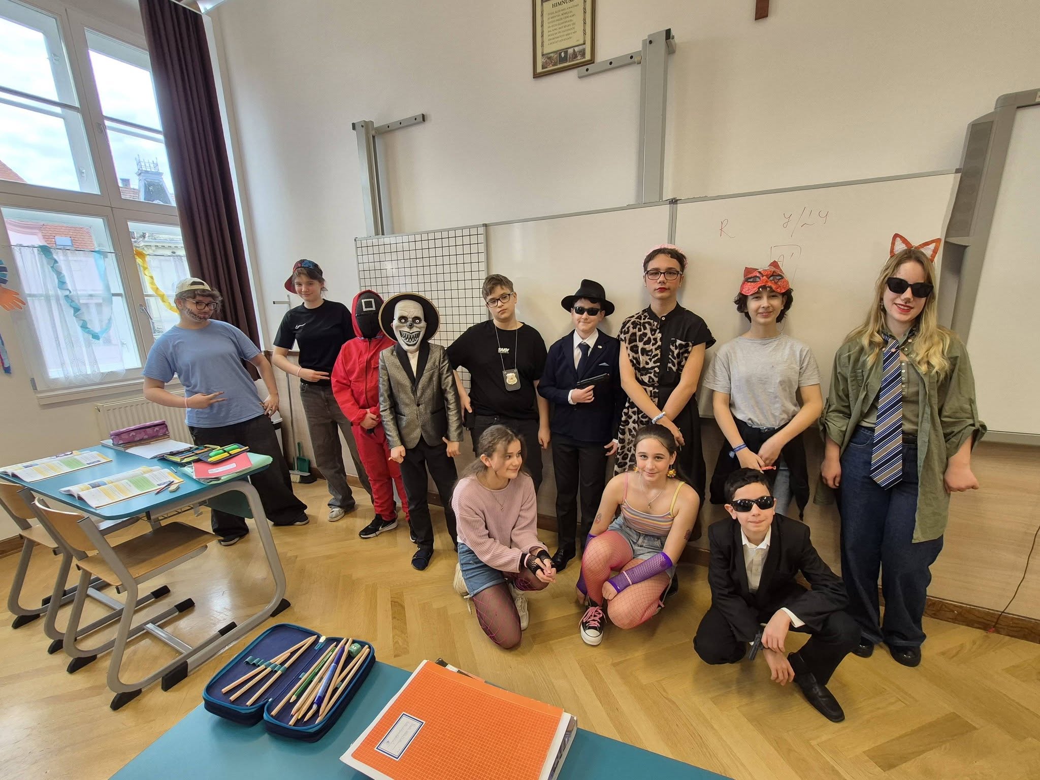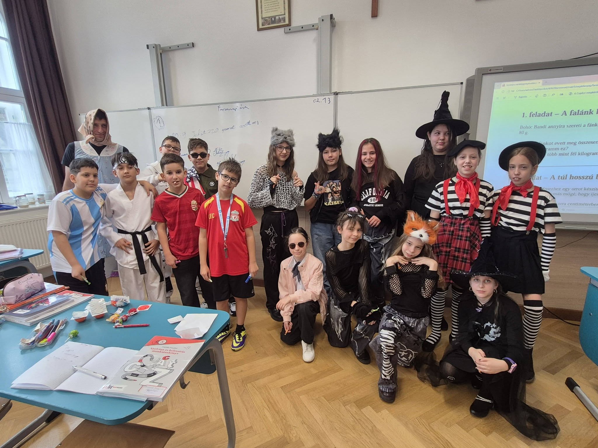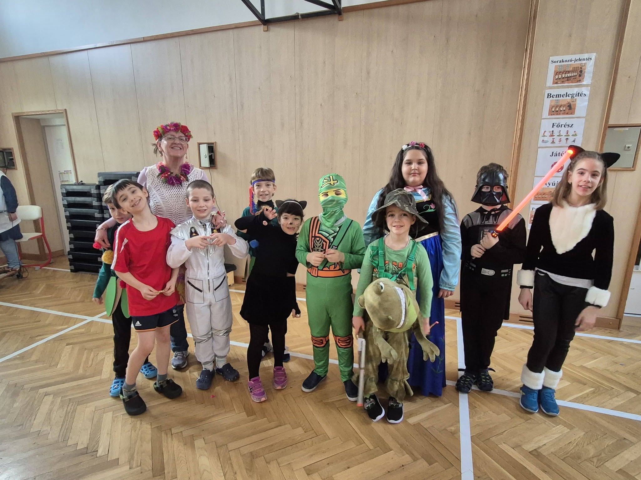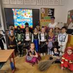 A gyerekek már reggel jelmezbe öltözve érkeztek, így az iskola folyosóit, tantermeit színes, ötletes és kreatív maskarások töltötték meg.