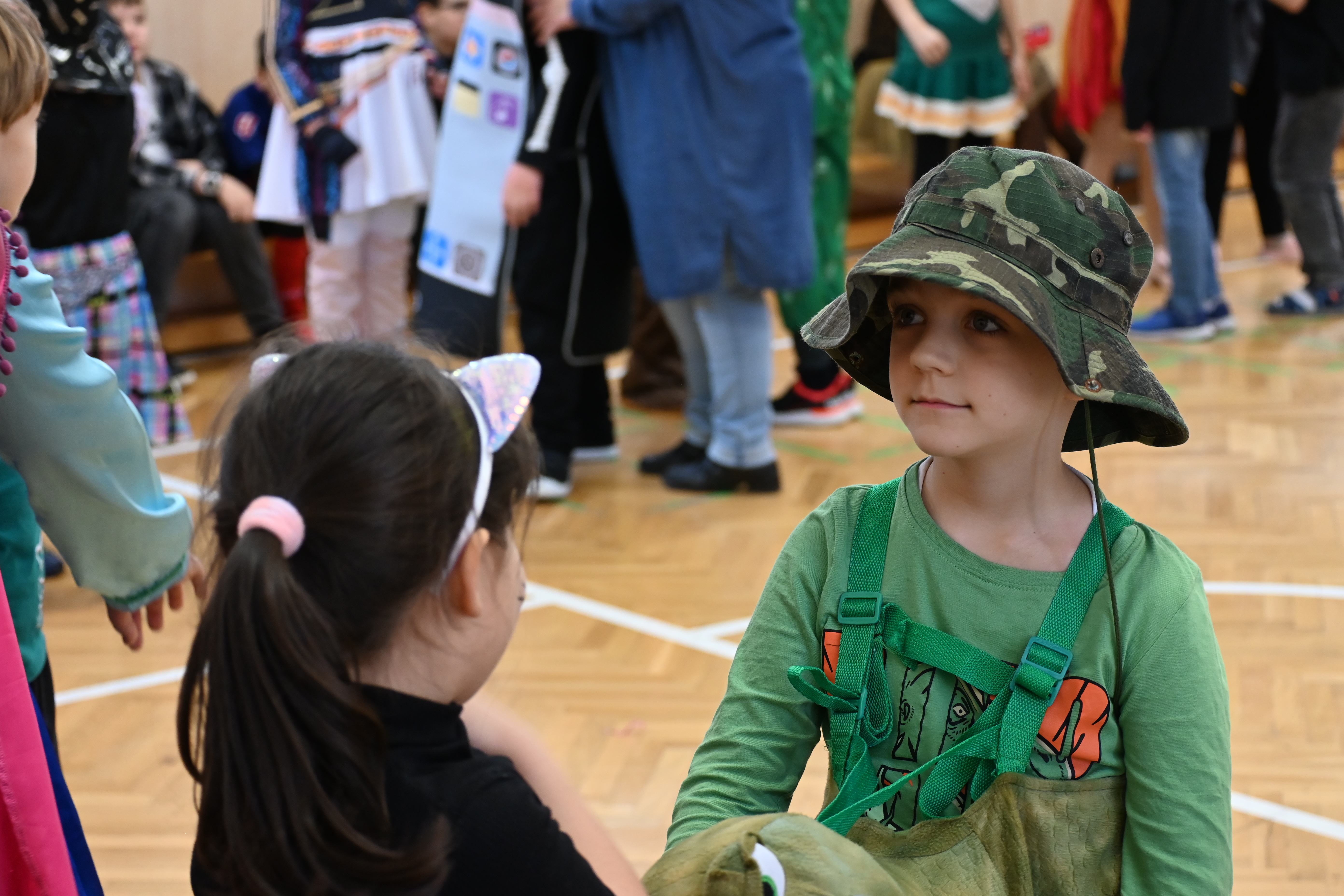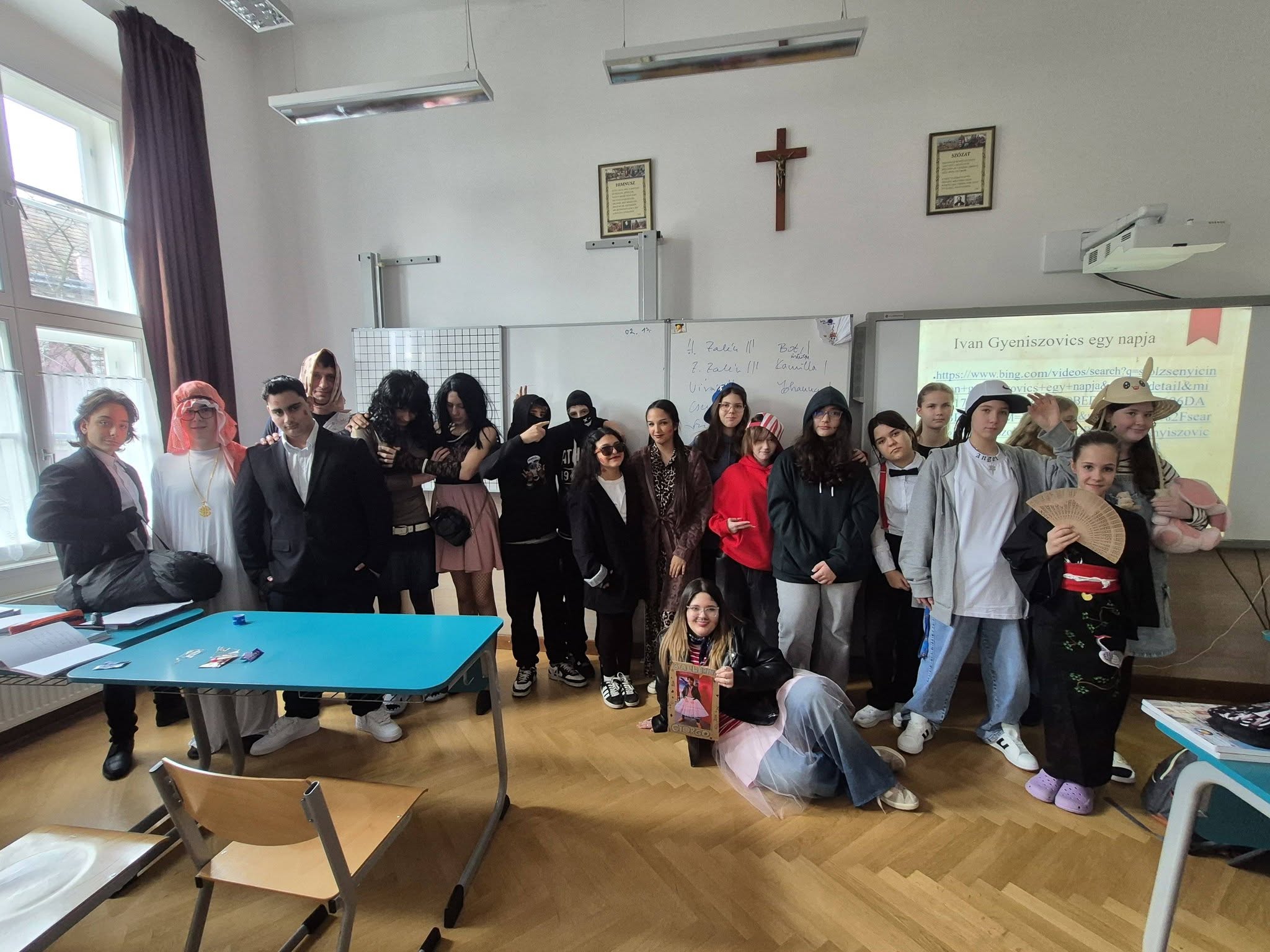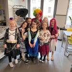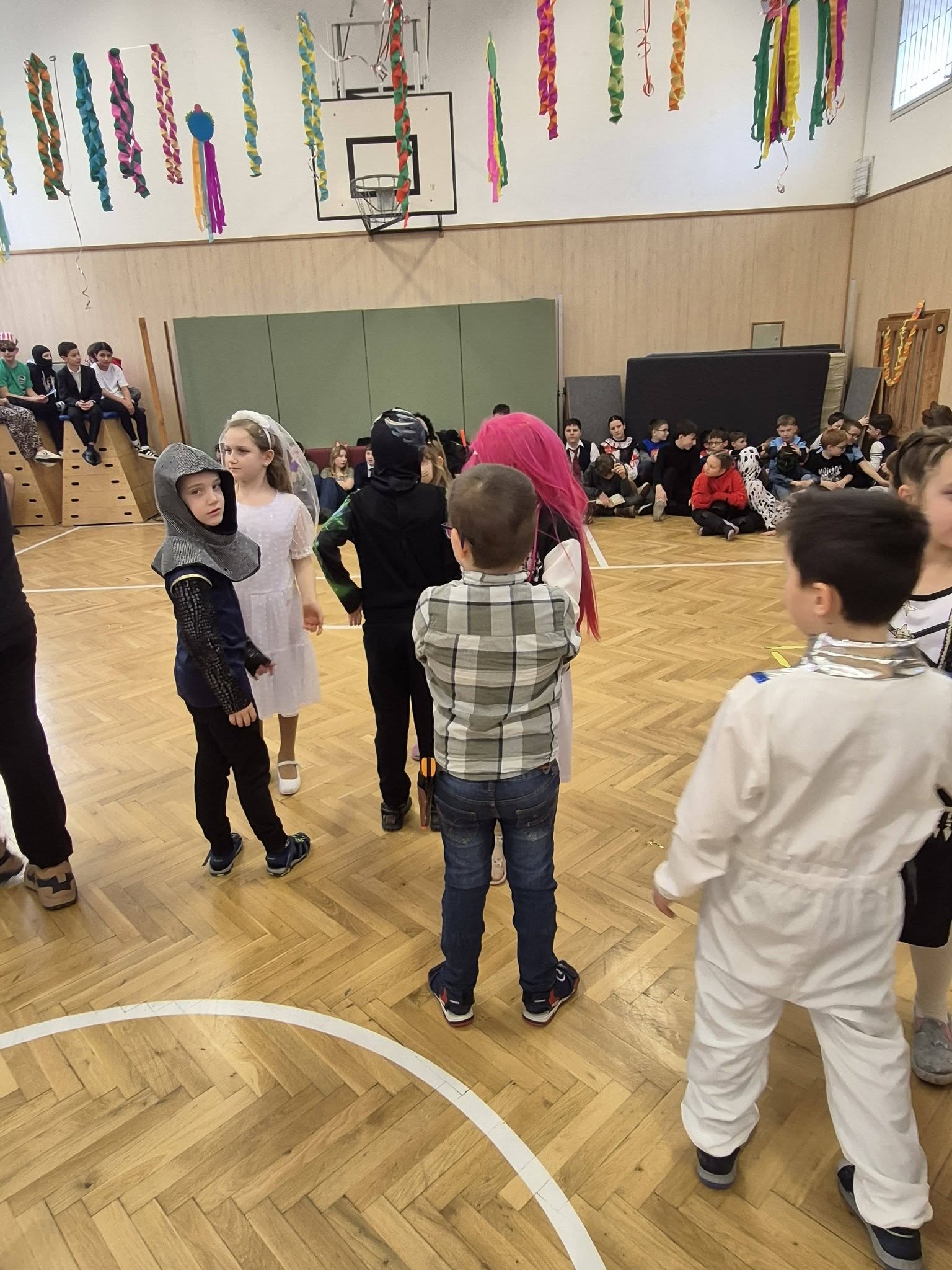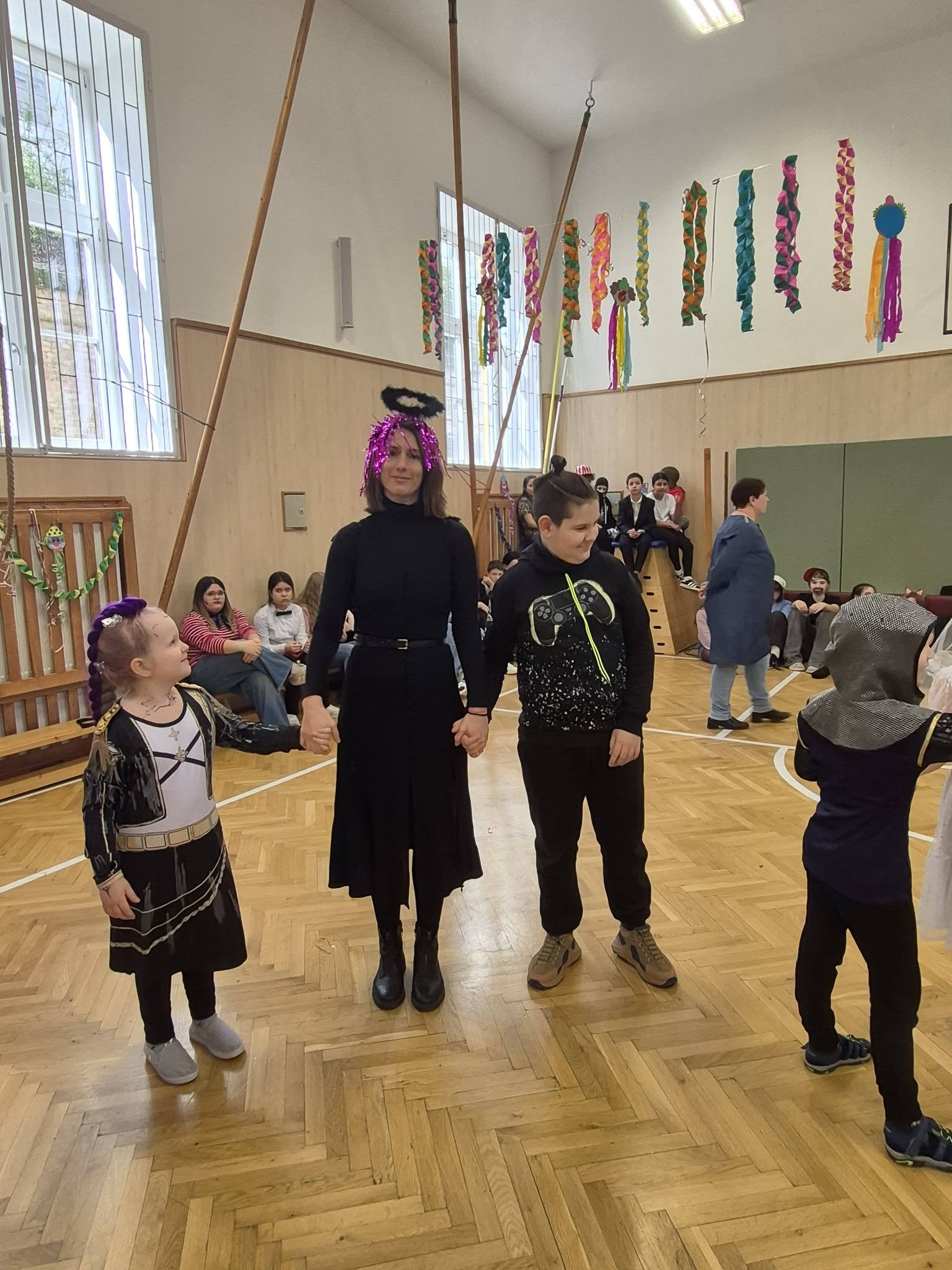 A gyerekek már reggel jelmezbe öltözve érkeztek, így az iskola folyosóit, tantermeit színes, ötletes és kreatív maskarások töltötték meg.