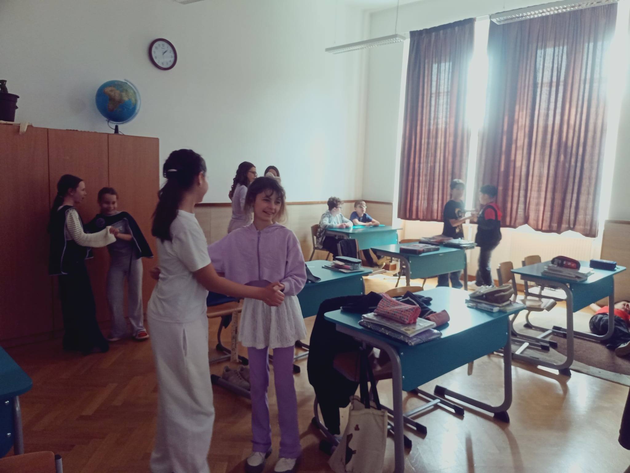 A gyerekek már reggel jelmezbe öltözve érkeztek, így az iskola folyosóit, tantermeit színes, ötletes és kreatív maskarások töltötték meg.