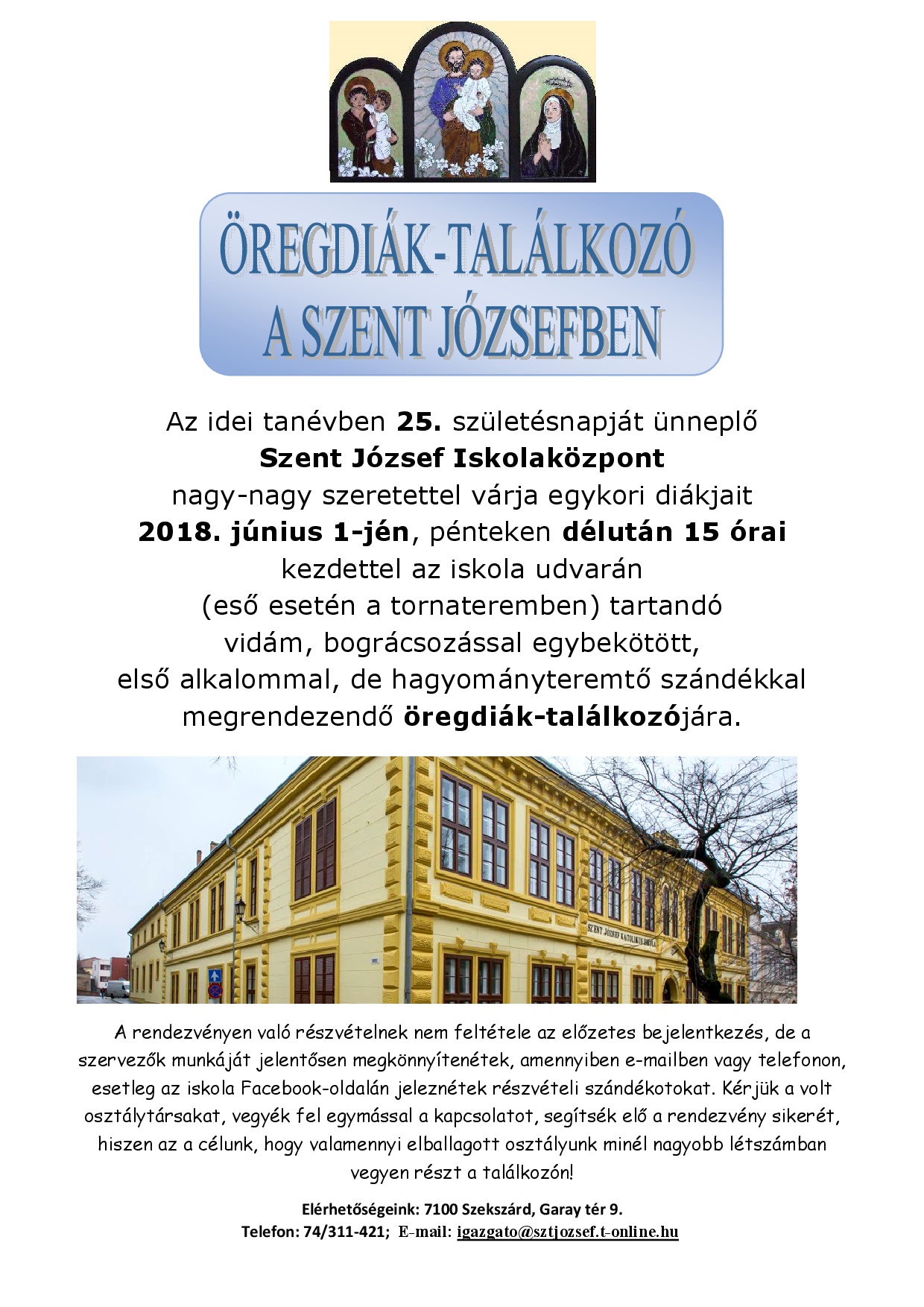 Szeretettel várjuk régi diákjainkat június 1-jén egy öregdiák-találkozóra!