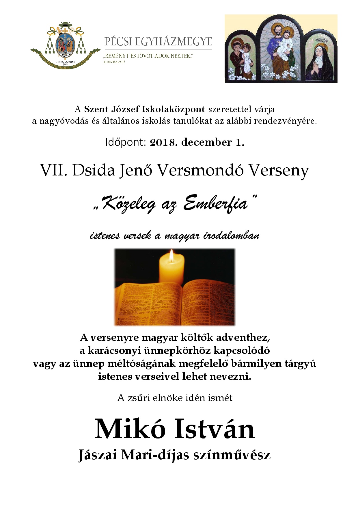 Szeretettel invitáljuk a nagyóvodás és általános iskolás tanulókat VII. Dsida Jenő versmondó versenyünkre!