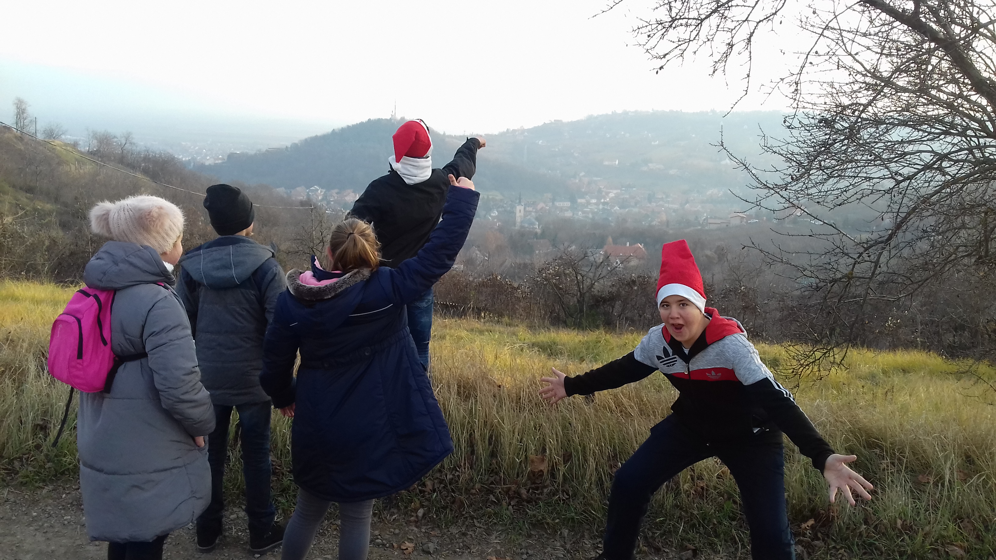 A diákönkormányzatos tanulók ötlete alapján december 7-re Mikulás-túrát szerveztünk. Kis csapatunkkal a hosszú őszt búcsúztató napsütéses délutánon egy vidám, élményekben gazdag kiránduláson vettünk részt. Utunk a közeli dombok közötti szurdikokon át vezetett. A dombtetőkről gyönyörű kilátás tárult elénk időnként a városra, máskor a környező szőlőskertekre. A távolból a település templomai és a Remete-kápolna mintha csak csendesen vigyázták volna lépteinket.