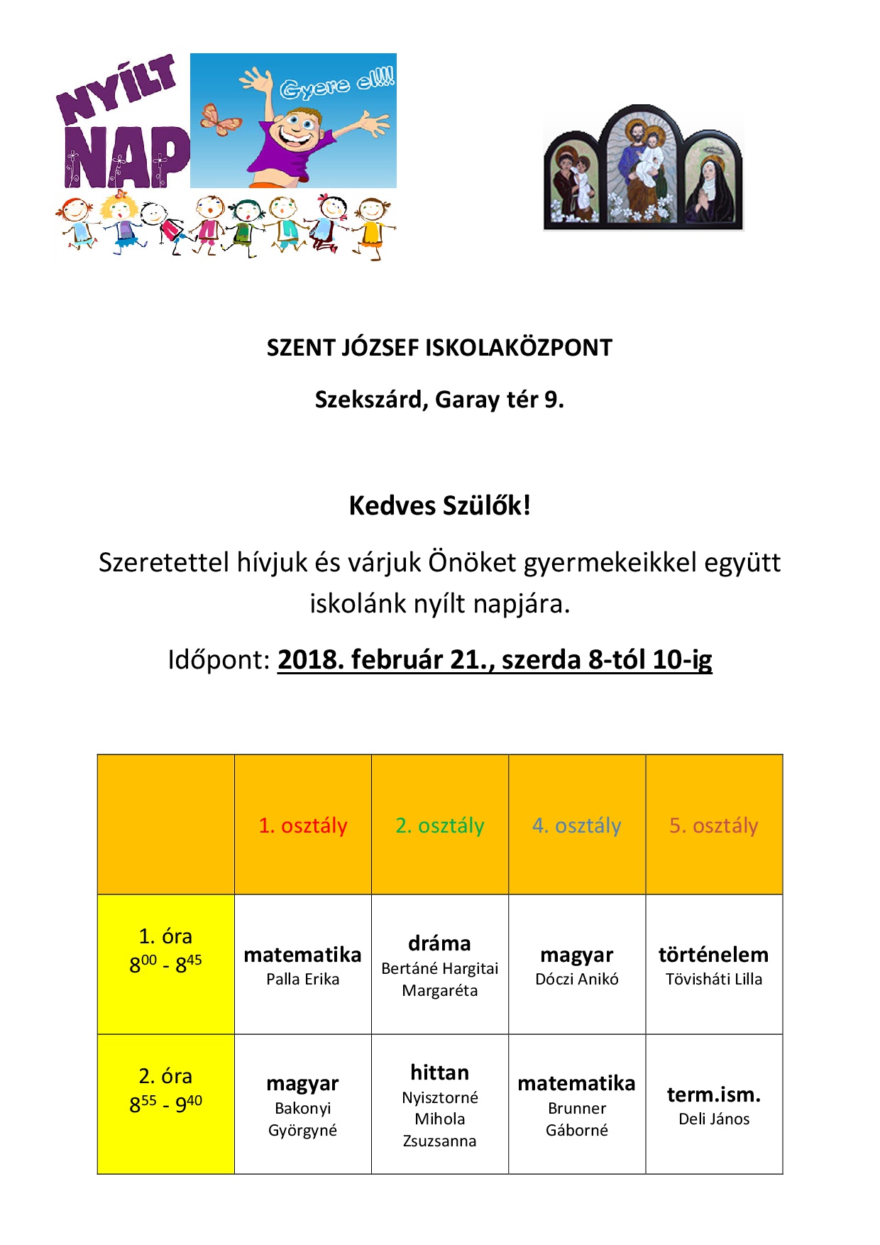 Szeretettel várjuk az iskolánk iránt érdeklődőket nyílt napunkra!