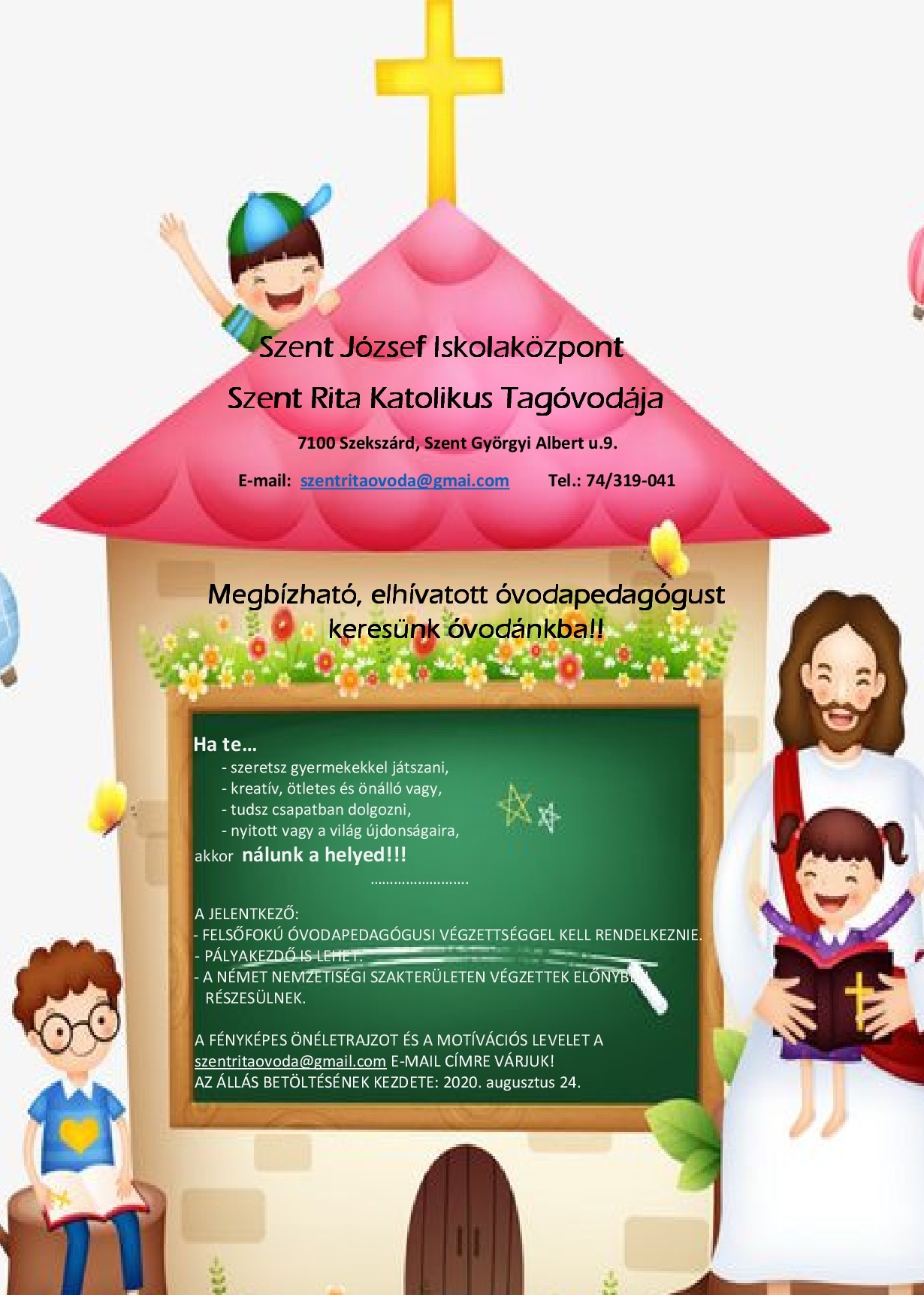 Megbízható, elhivatott óvodapedagógust keresünk óvodánkba.
