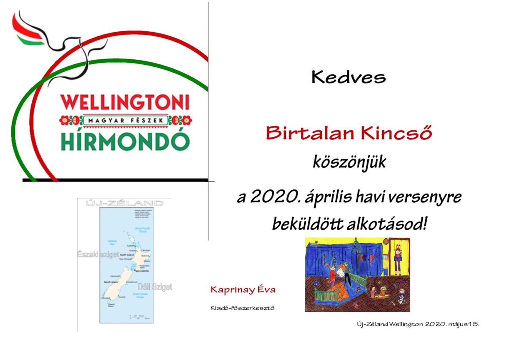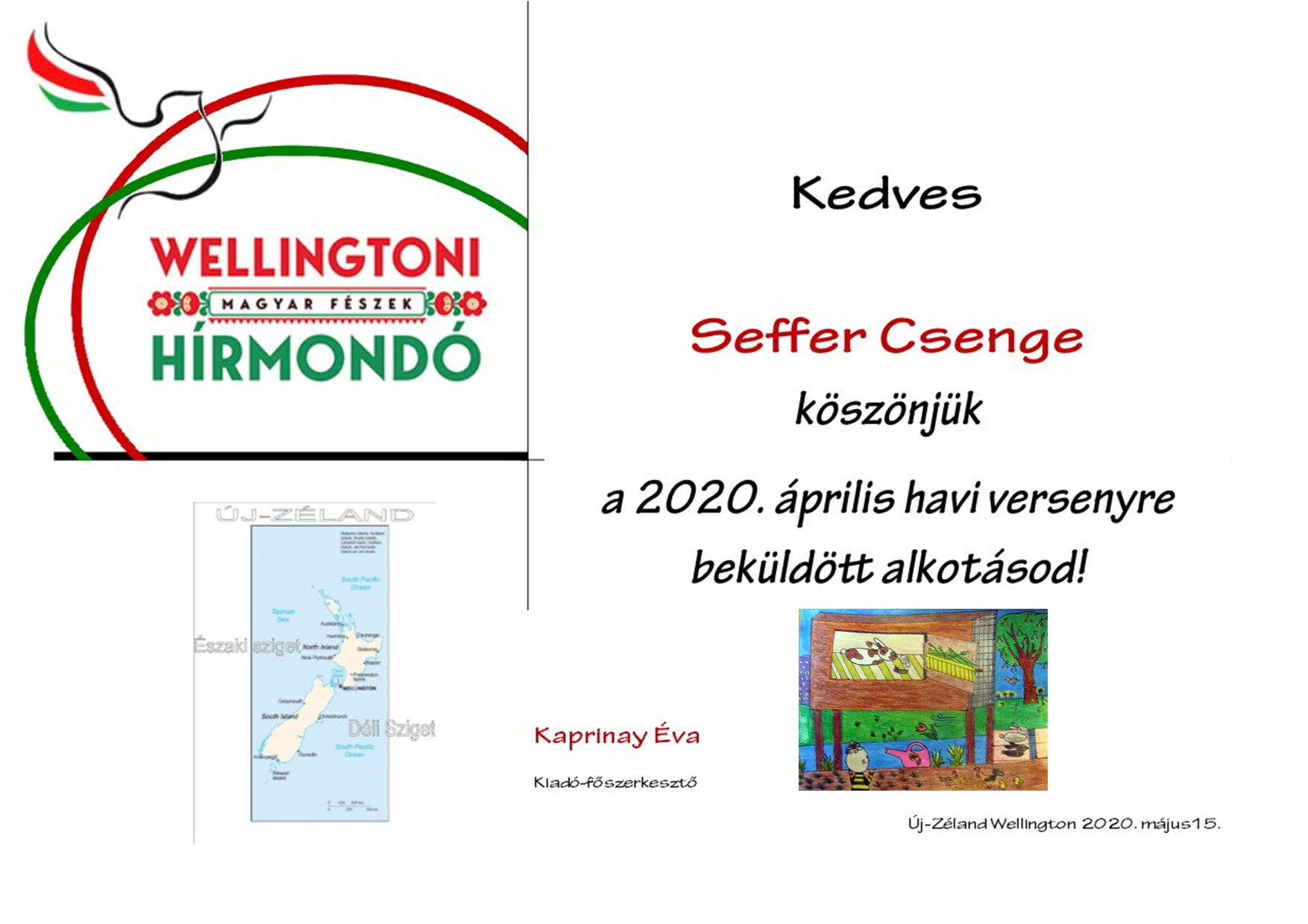 Az új-zélandi Wellingtoni Magyar Fészek Hírmondó "Bezárva, de jókedvűen" címmel rajzpályázatot hirdetett, melyen részt vett iskolánk három tanulója.