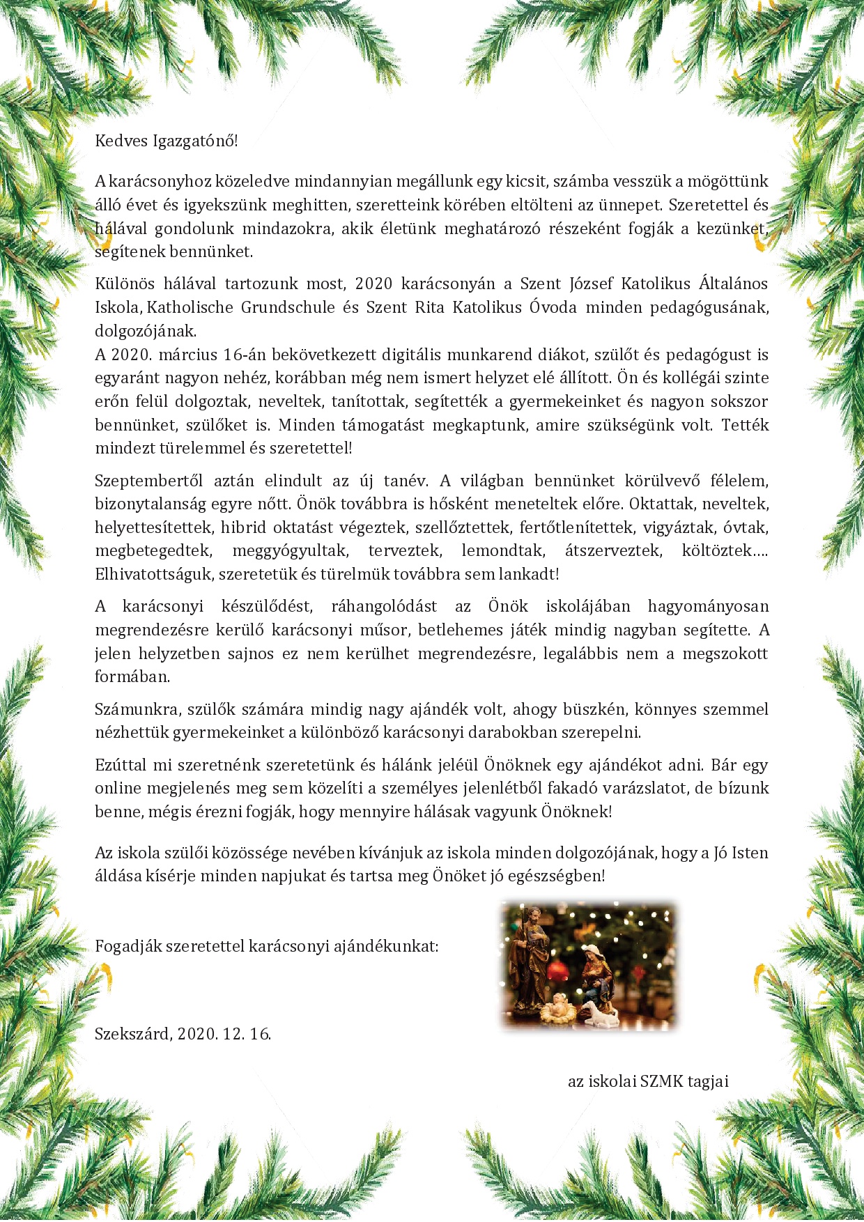 Áldott, békés, boldog ünnepeket kívánunk a kedves Szülőknek!