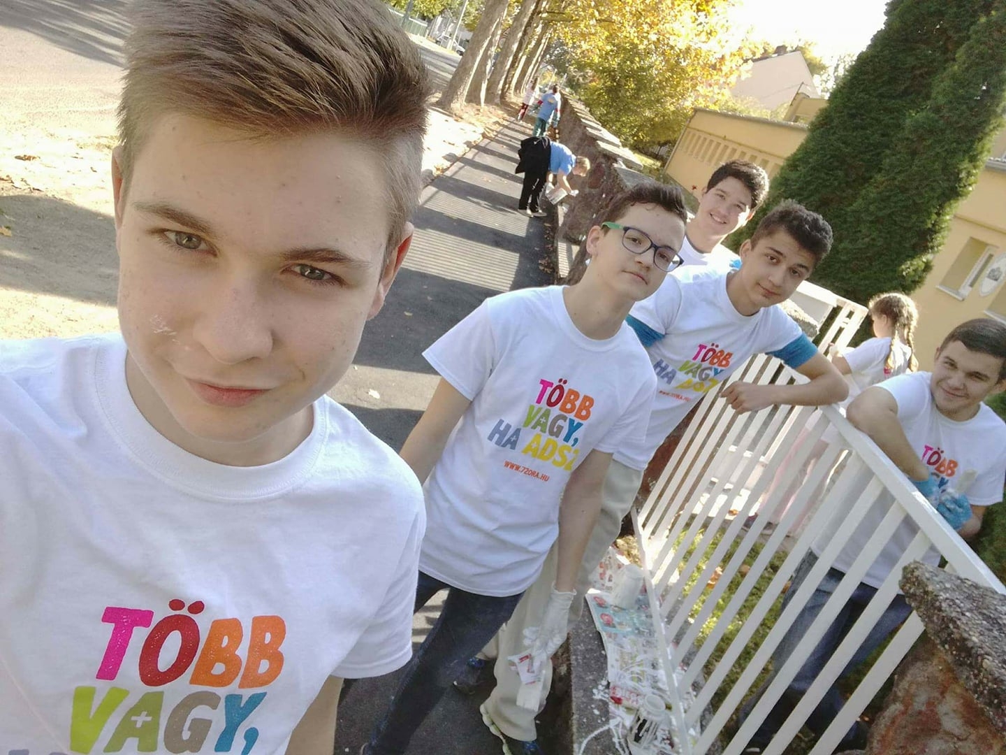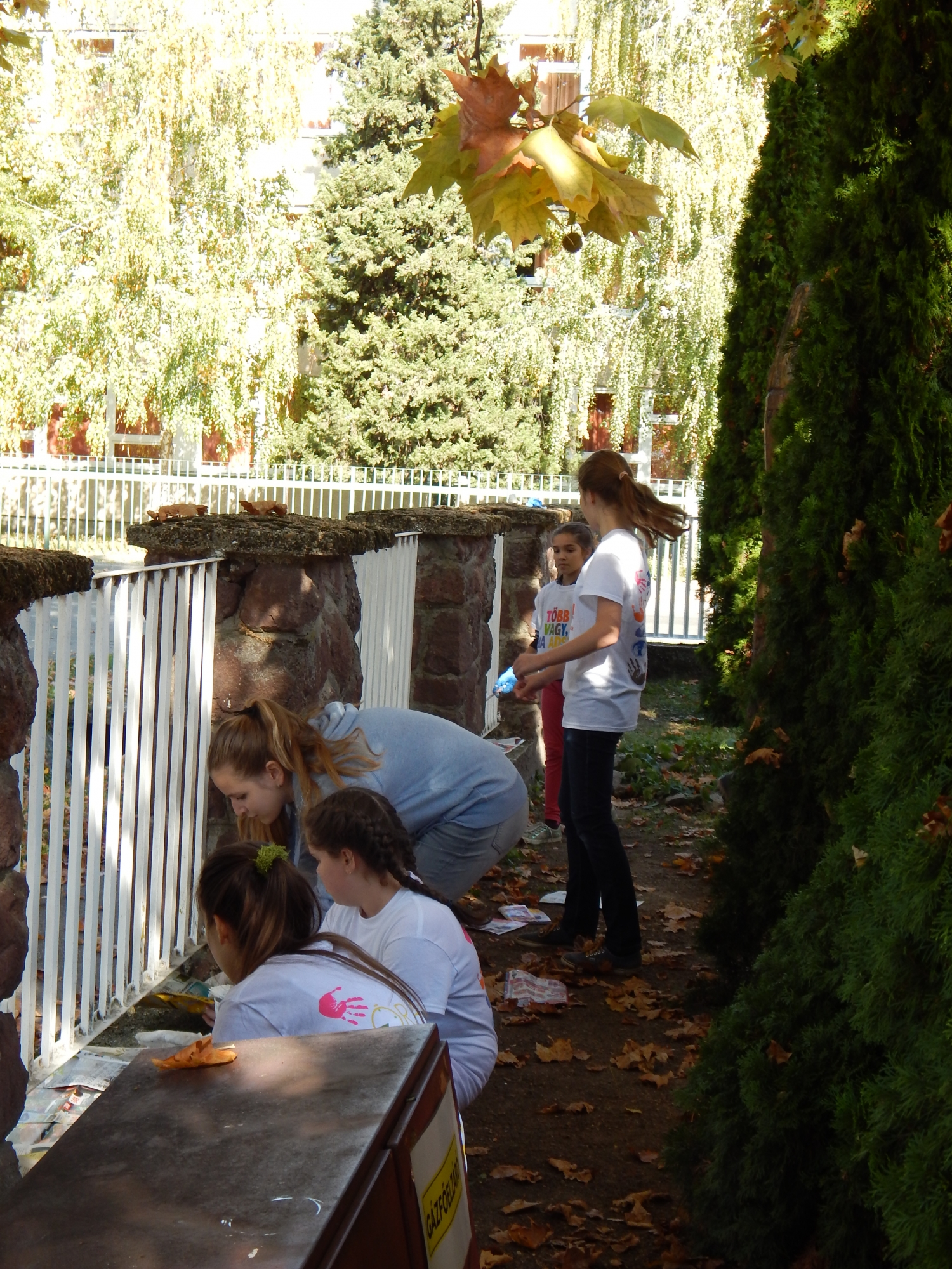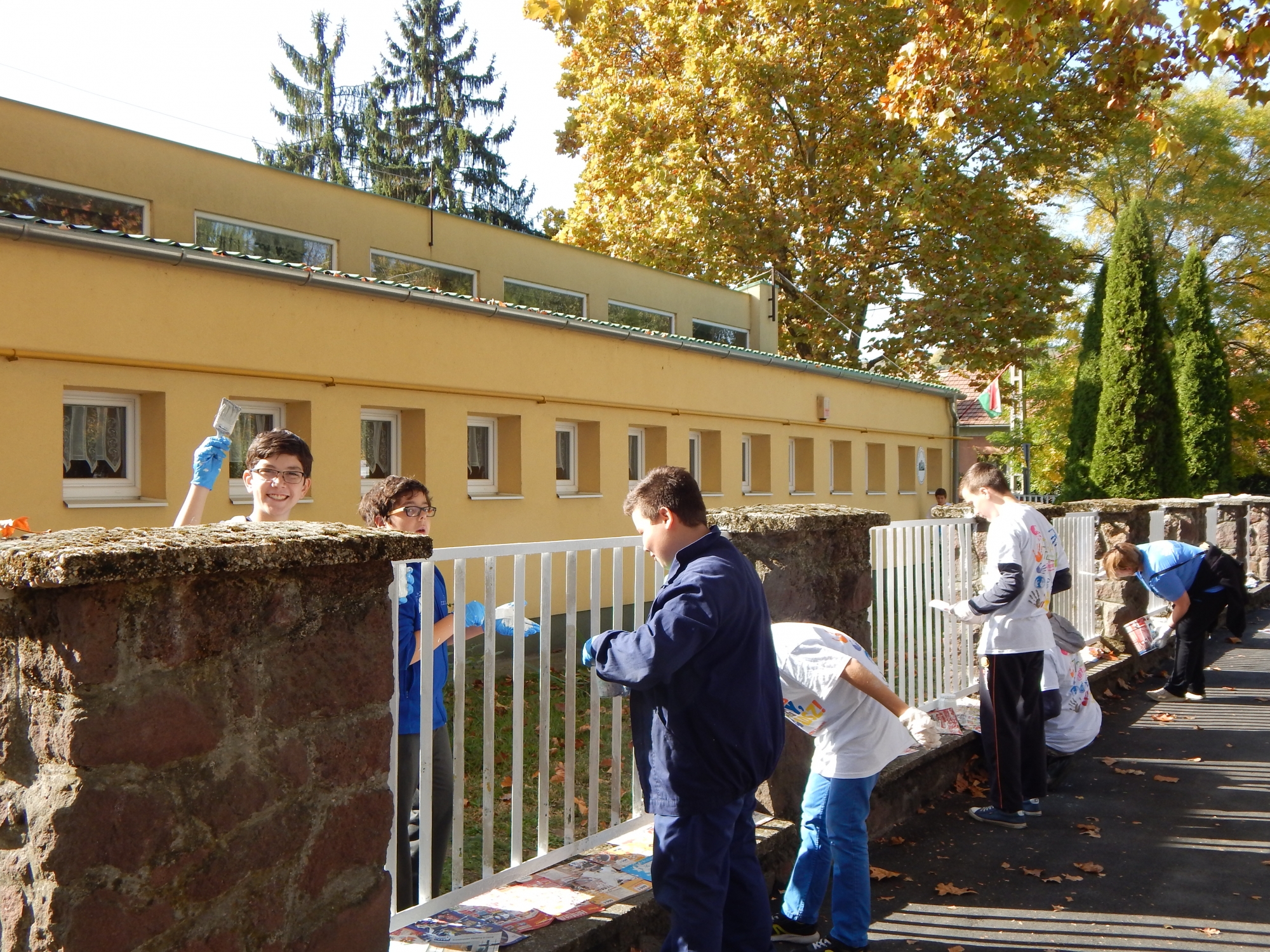 A fiatalok egyik csoportja, közel 50-en, a katolikus óvodánk kerítésének megújításán fáradozott. Közülük 27-en iskolánk jelenlegi és volt diákjai közül kerültek ki. Csiszolták és újrafestették a már nagyon megkopott kerítést. A munka érdekessége volt, hogy óvónénik és már megnőtt, volt óvodások, valamint szülők ezúttal együtt dolgoztak óvodánk megújításán. Nemcsak a munkanapon, hanem már korábban is megnyilvánult az összefogás ereje, hiszen a festék ilyen nagy felületre igen drága volt, amit csak sokak anyagi hozzájárulásával tudtunk előteremteni.