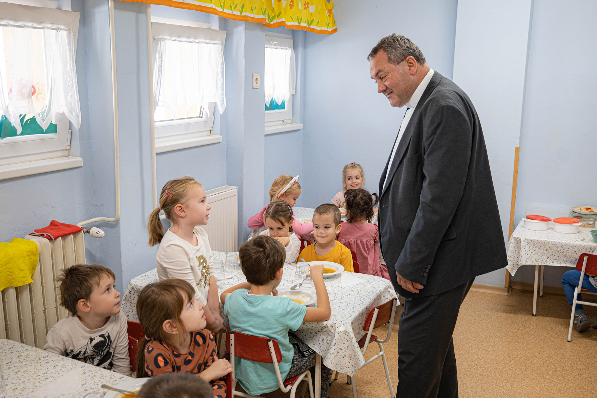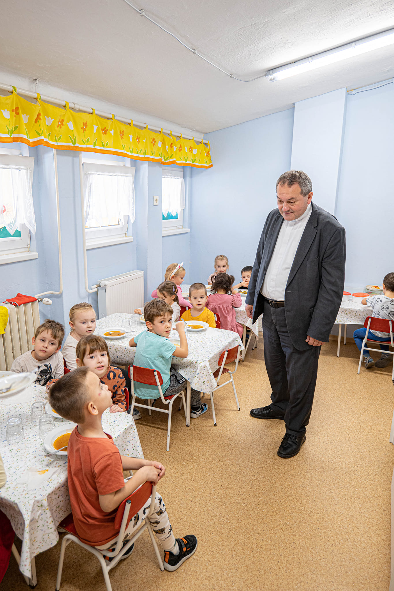 Felföldi László püspök atya meglátogatta az óvodát és az iskolát is.