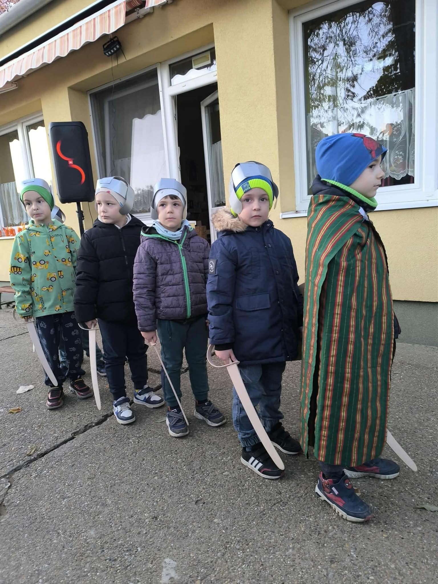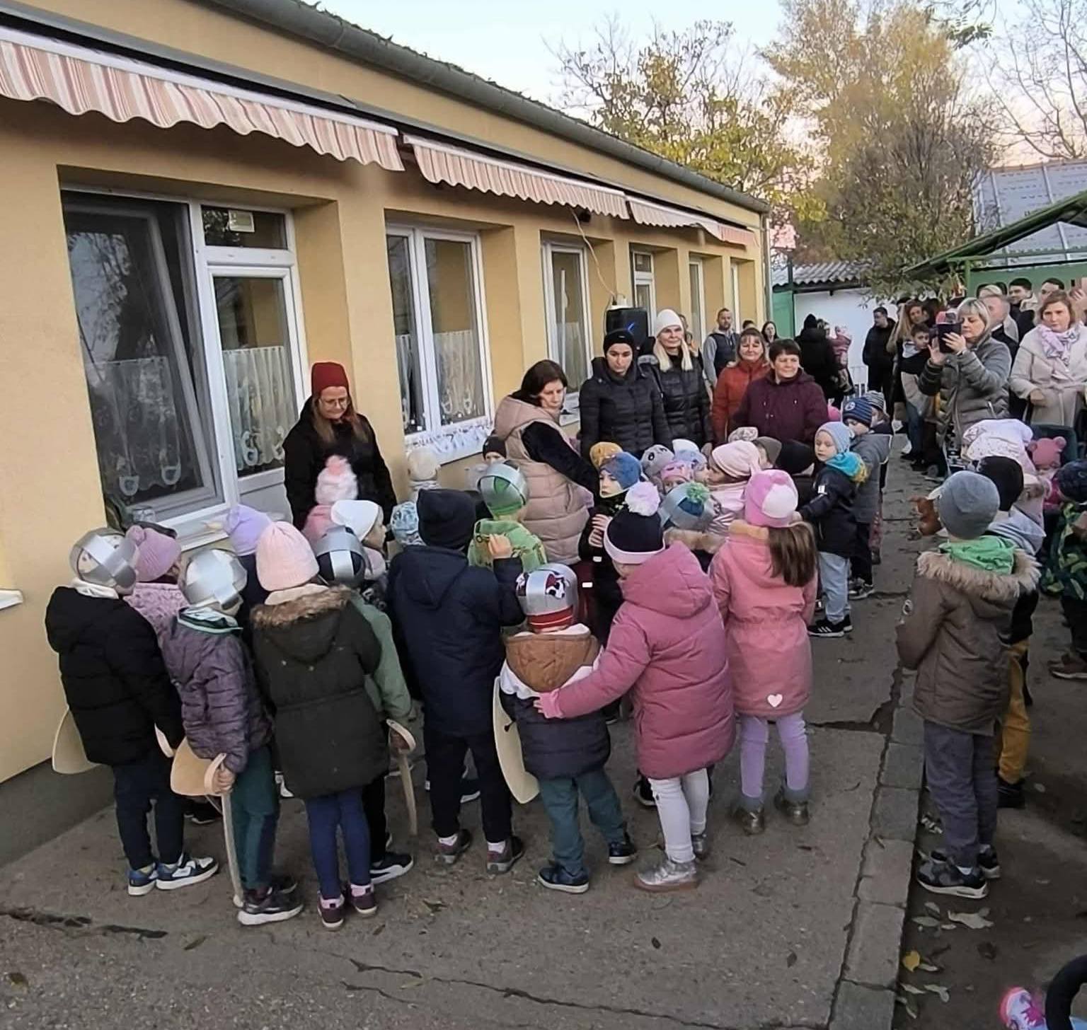 A nagycsoportosok Szent Márton életéről szóló műsorával kezdődött az este, majd lámpás felvonulással sétáltunk az óvodánk körül.