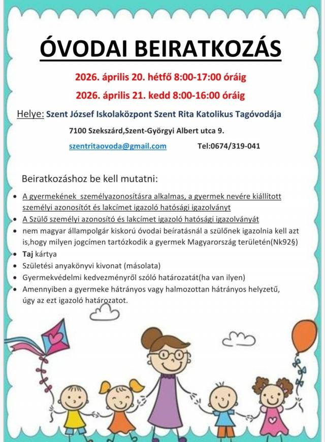 A beiratkozás a fenntartó által közzétett hirdetménynek megfelelően 2026. április 20-21-én lesz.