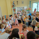 Tapsifüles nyuszikának nagyon sok a dolga, piros tojást, hímes tojást szerte-széjjel hordja. Hordjad, hordjad kis nyuszikám kéket is, tarkát is, nekem is van egy kosaram, bele fér még száz is!