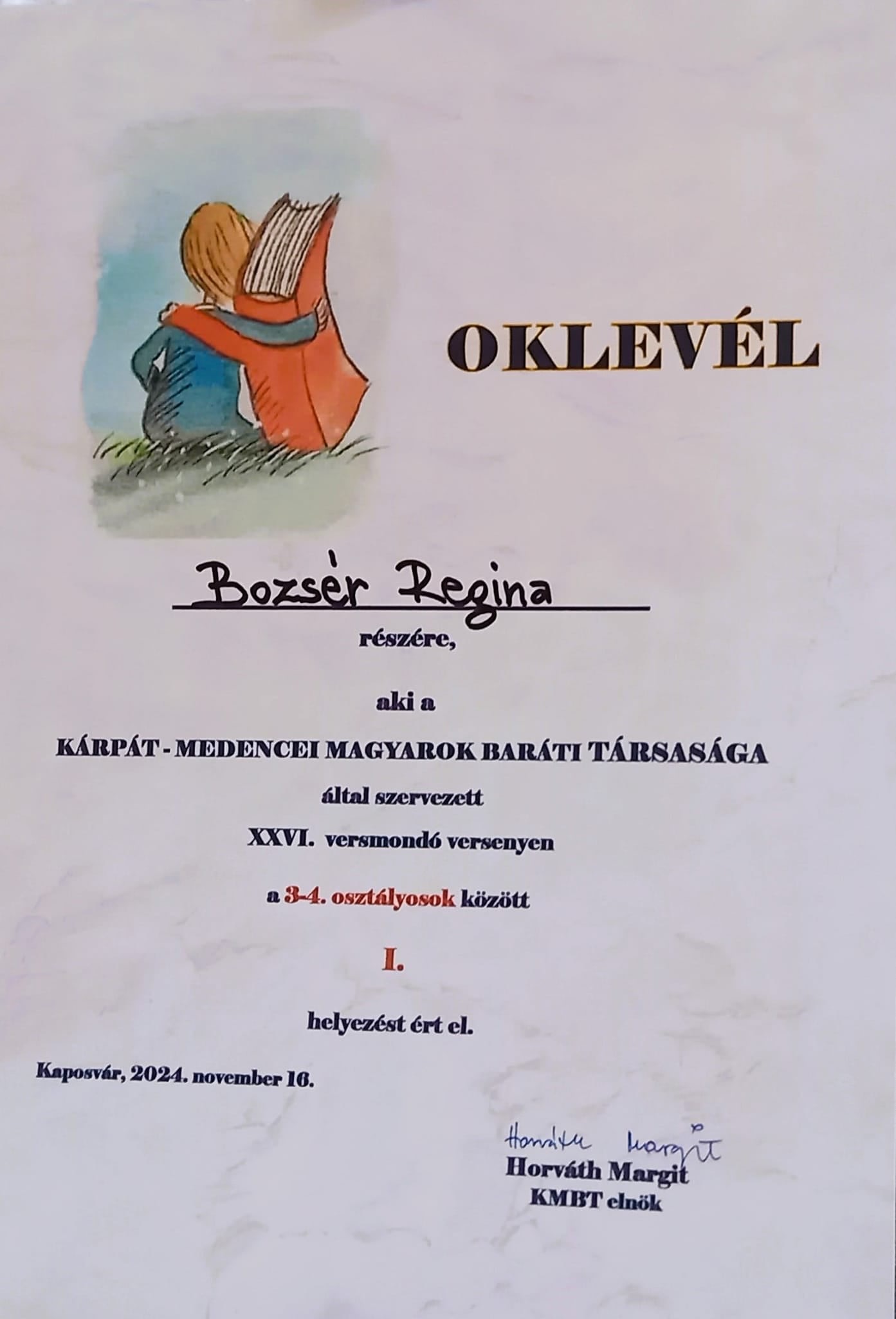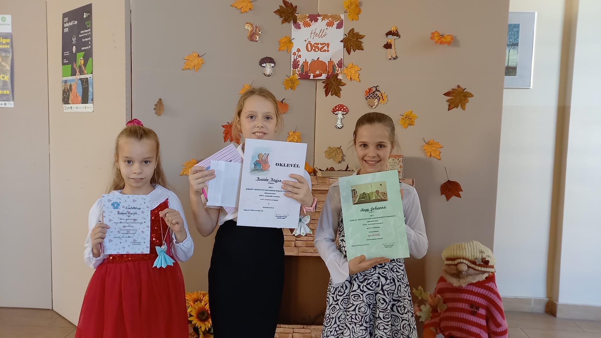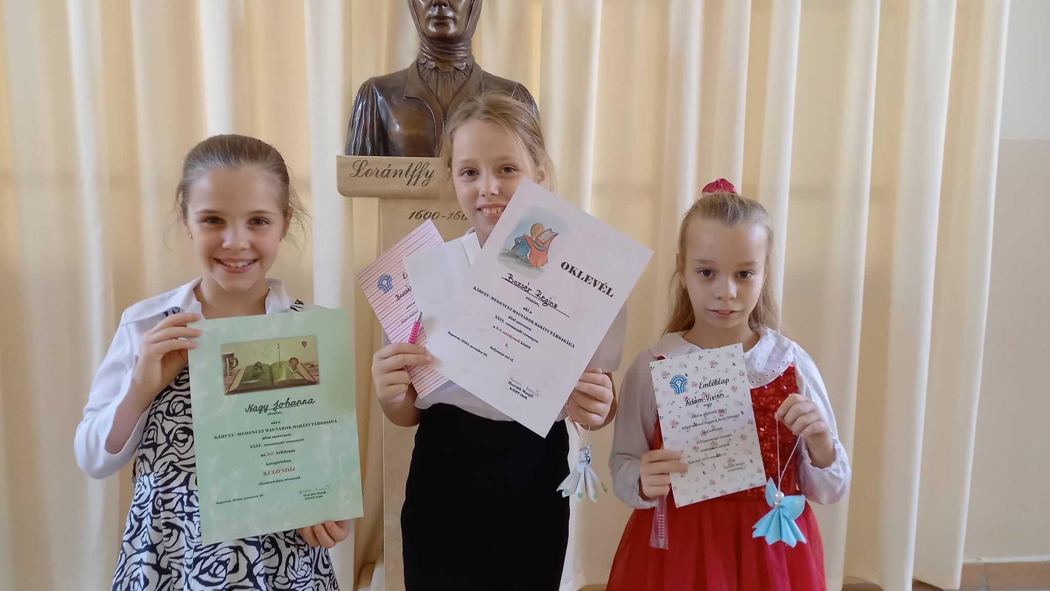 A III-IV. osztályosok kategóriájában Bozsér Regina első helyezést ért el, az V-VII osztályosok kategoriájában Nagy Johanna különdíjat kapott.