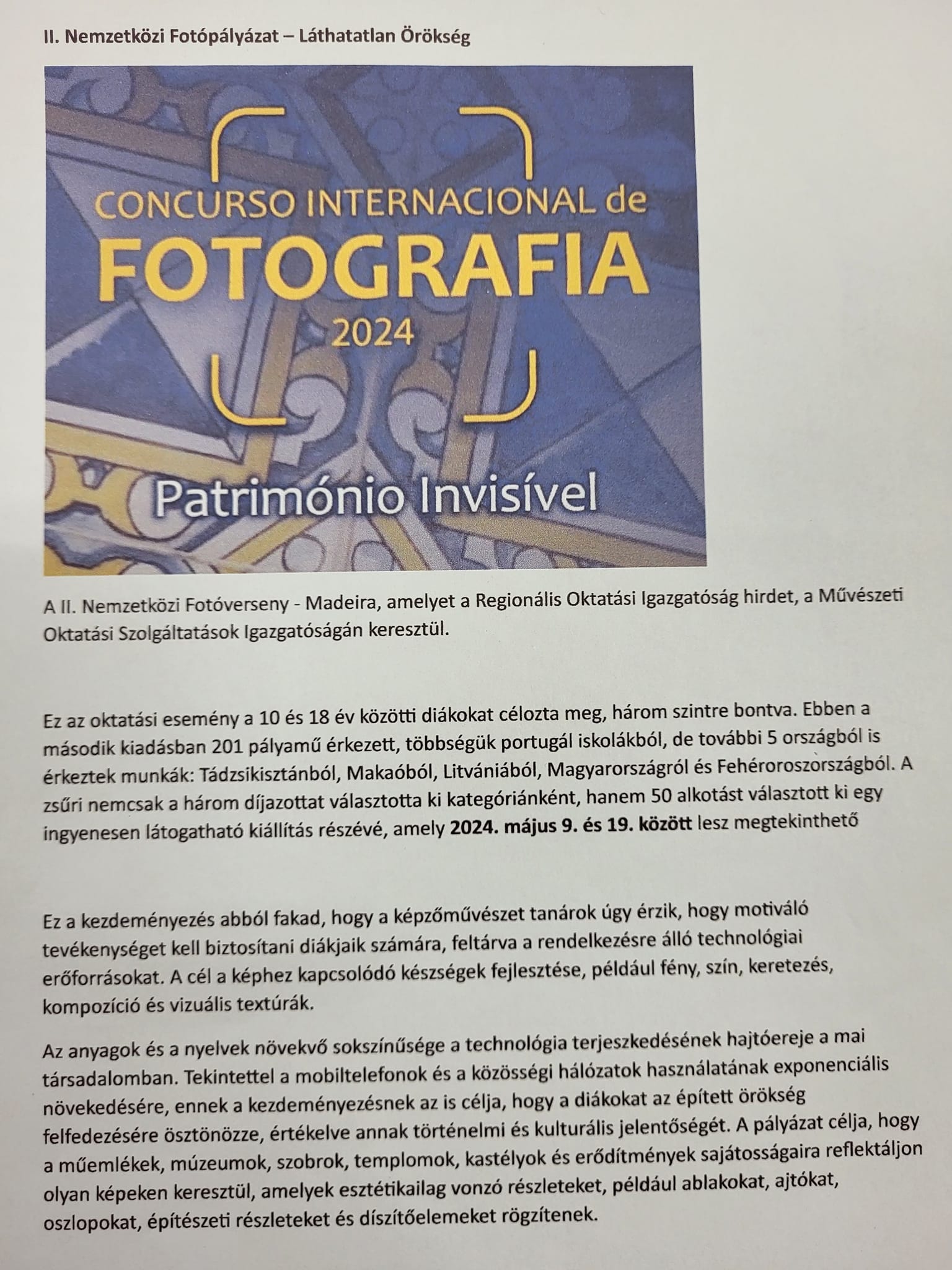 Iskolánk 6. osztályos tanulói - Tesinszki Alíz és Lengyel Luca - fotóit kiállították Madeirában a II. Nemzetközi Fotóversenyen!