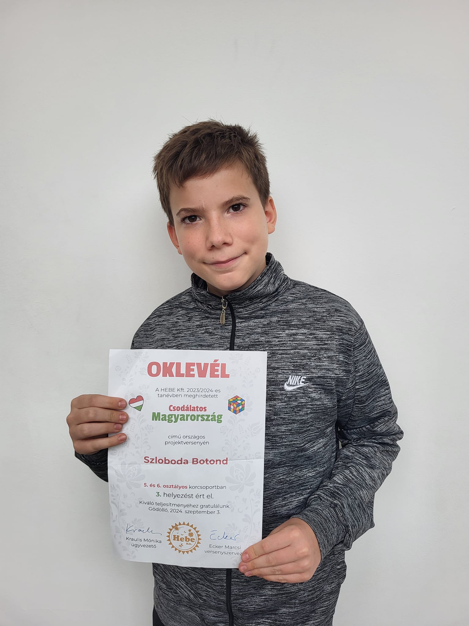 Csodálatos Magyarország verseny 2024 Iskolánk tanulója Szloboda Botond 3.helyezést ért el.
