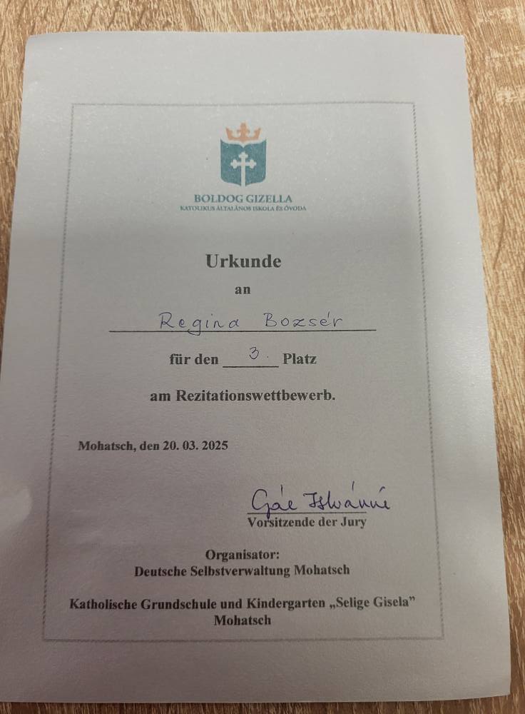 Március 20-án tartották hagyományosan a mohácsi Boldog Gizella Katolikus Általános Iskolában a térségi német vers- és prózamondó versenyt.