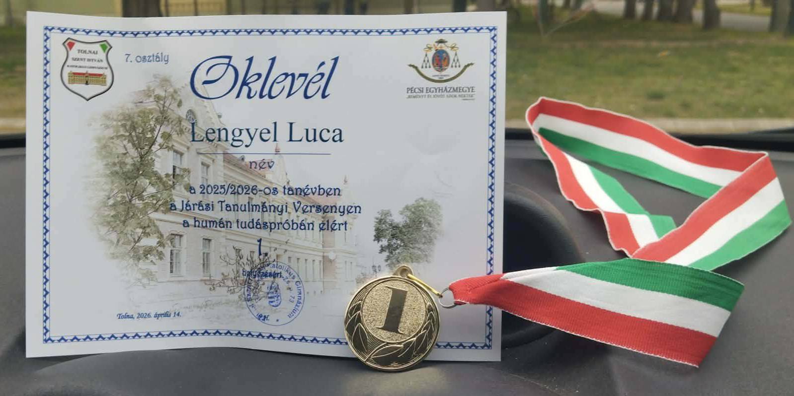 Lengyel Luca 7. osztályos tanulónk Tolnán a Járási Tanulmányi Versenyen kétszer is megmérette magát.